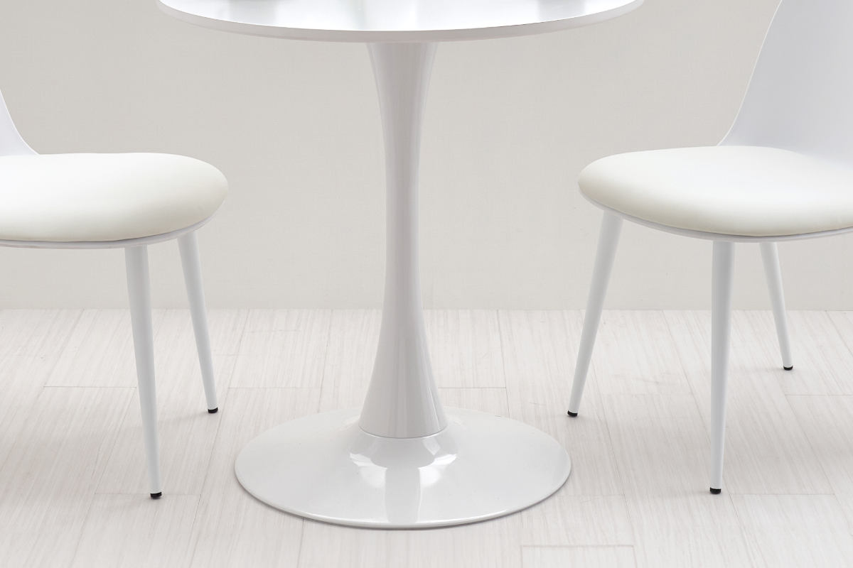 やさしい丸型のカフェテーブルとチェア同色2脚のセットです。テーブル天板は上品なマーブル柄と清潔感のあるホワイトの2種類、チェアはくすみカラーの3色から選択可能。丸い天板と柔らかなフォルムのチェアが空間をやさしく彩り、2人での食事やティータイムを心地よい時間にしてくれます。