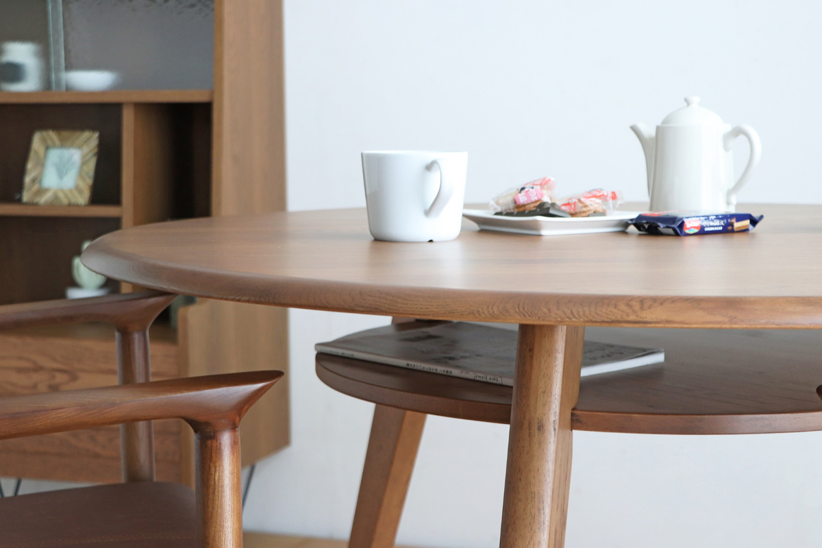 ●木の温かみとなめらかな丸い天板が、食卓を上品で心地よい空間に演出します。