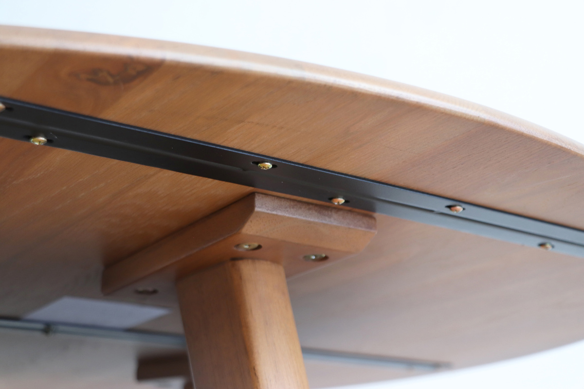 無垢材の天板の反りやたわみを防ぐために、天板裏には反り止めの金具を施しており、長く安心して使える仕様になっています。