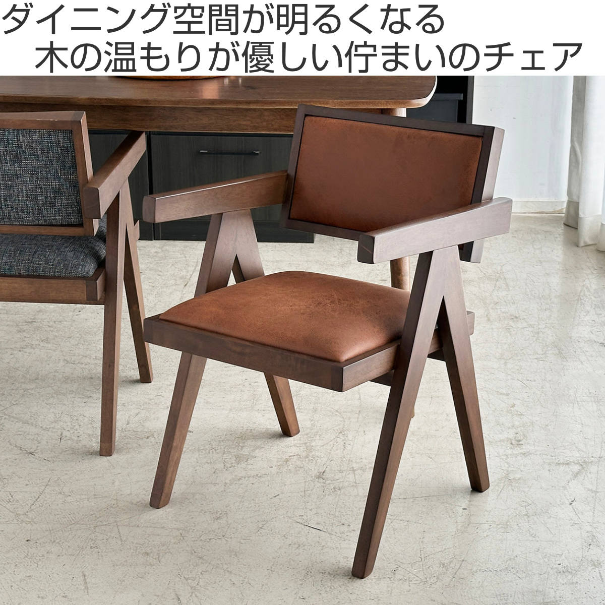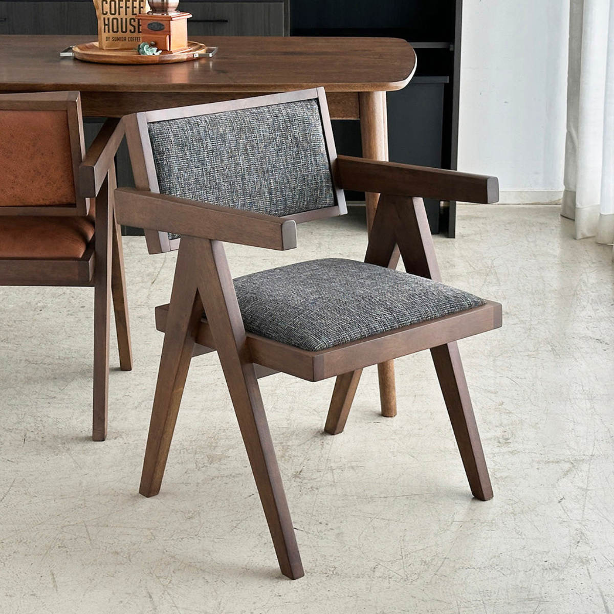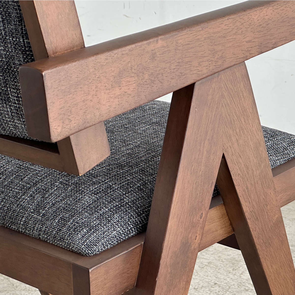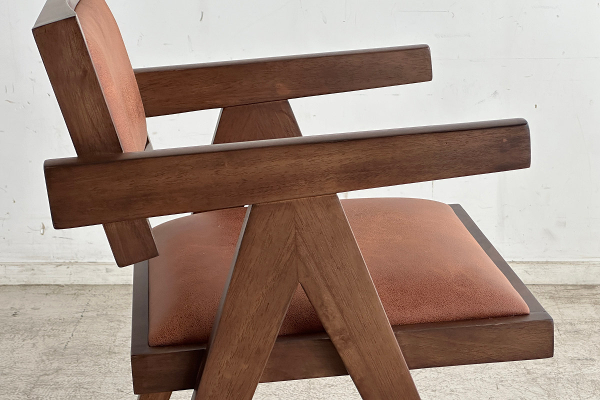 木材と張地の質感が調和する洗練チェア