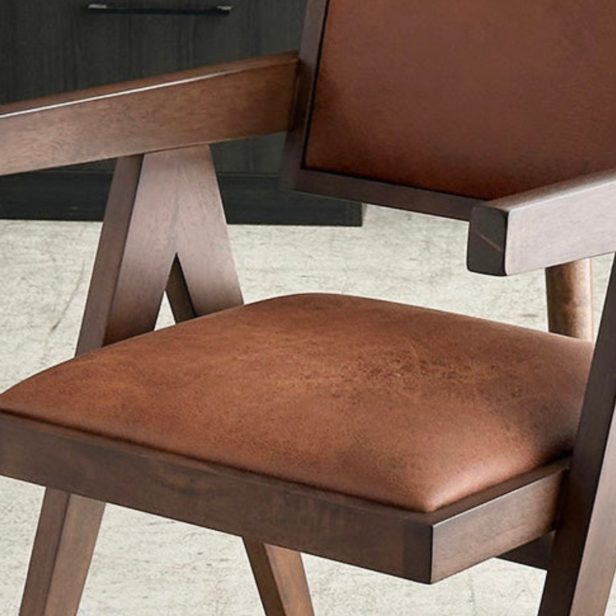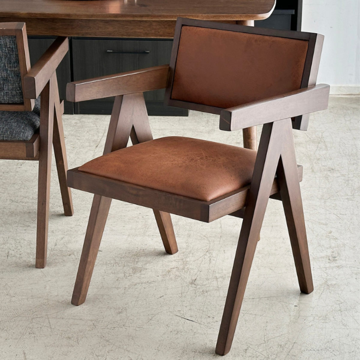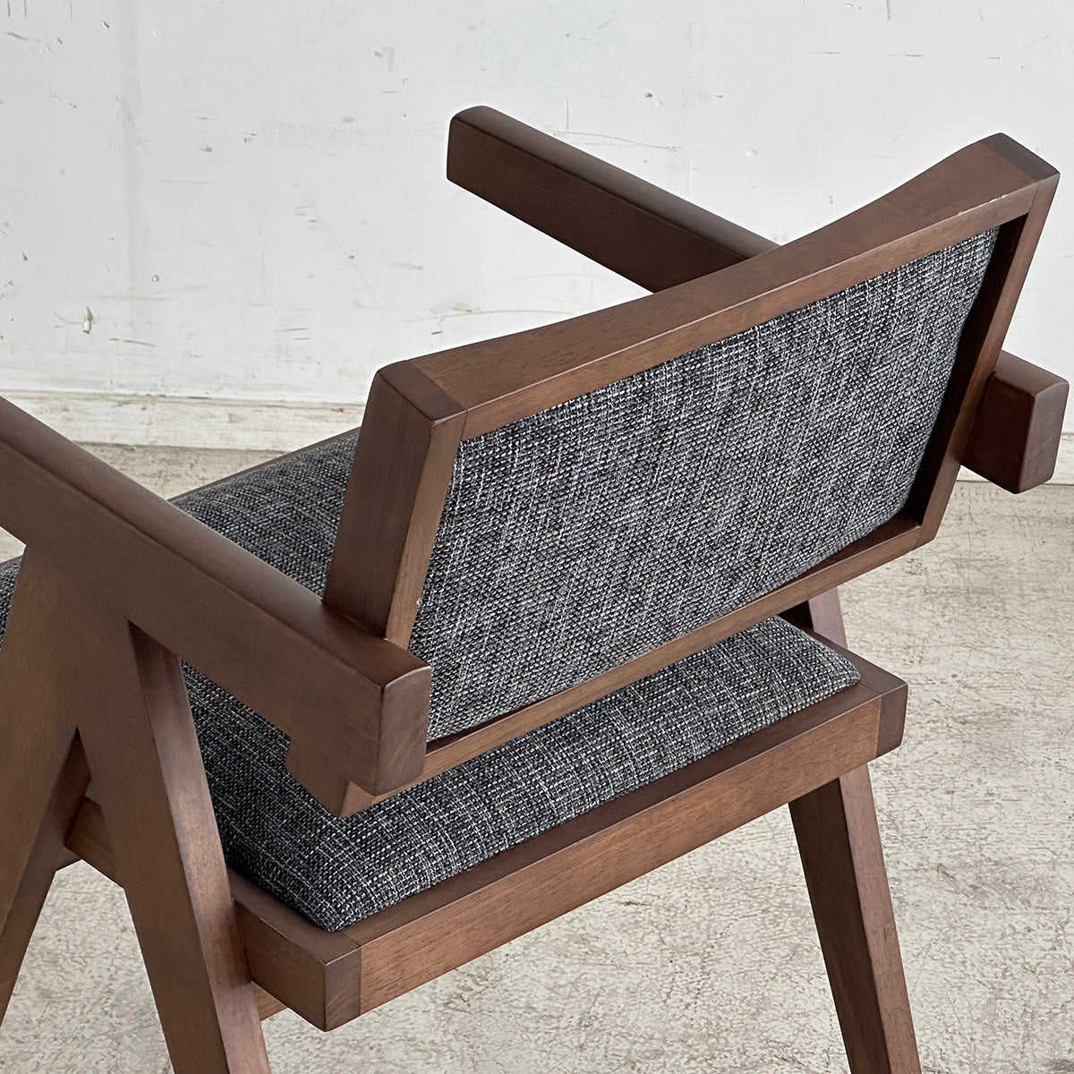 木材と張地の質感が調和する洗練チェア