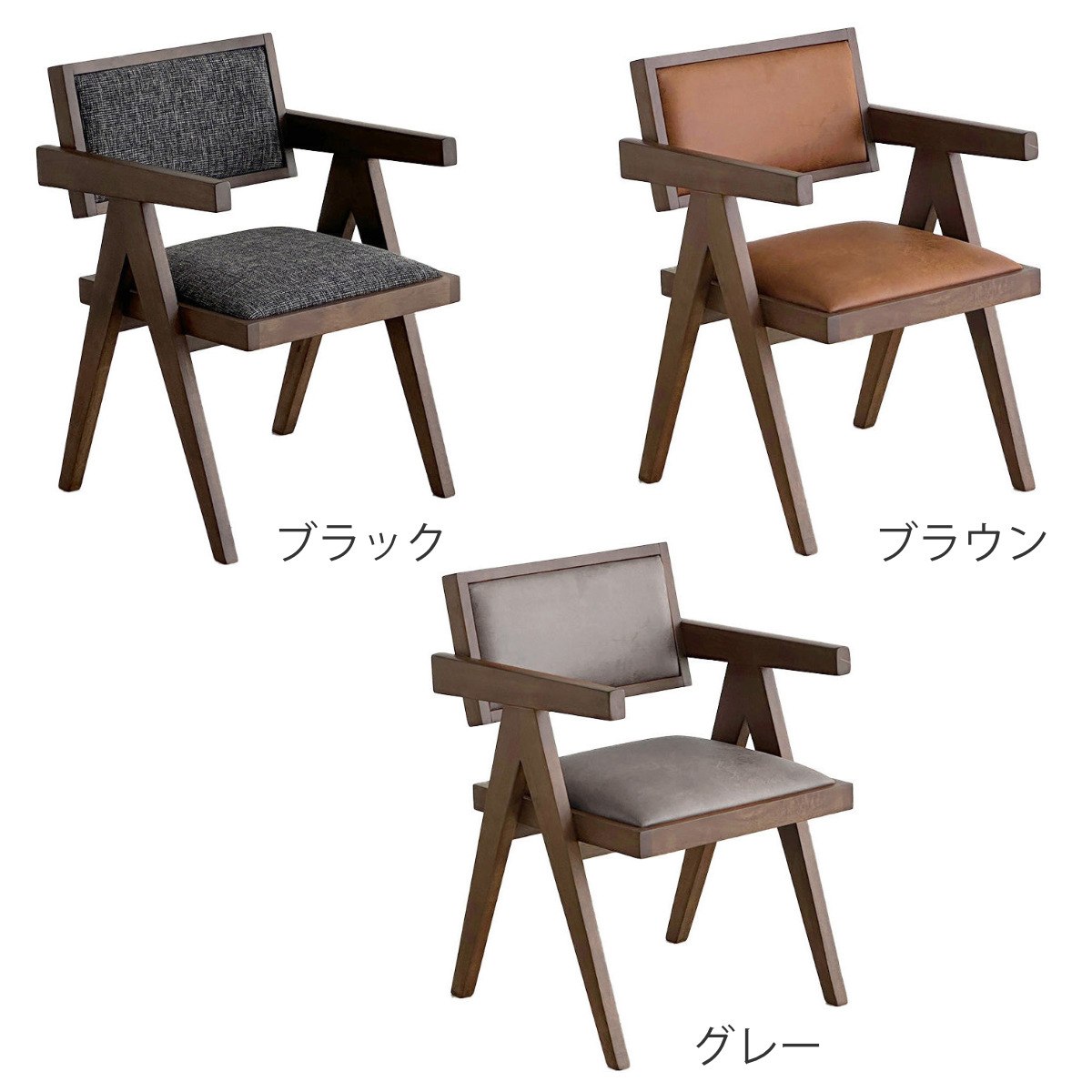 | 材質 | 本体:ラバーウッド無垢(ウレタン塗装) 背面・座面:ポリエステル、ファブリック(ブラック)、レザー調ファブリック(ブラウン・グレー) |