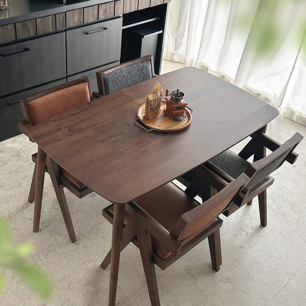 無垢材ならではのあたたかな木目と、落ち着いた色味の張地を組み合わせたダイニングチェアです。張地の優しい色合いは空間に取り入れやすく、おしゃれでほっとくつろげるダイニングを演出します。