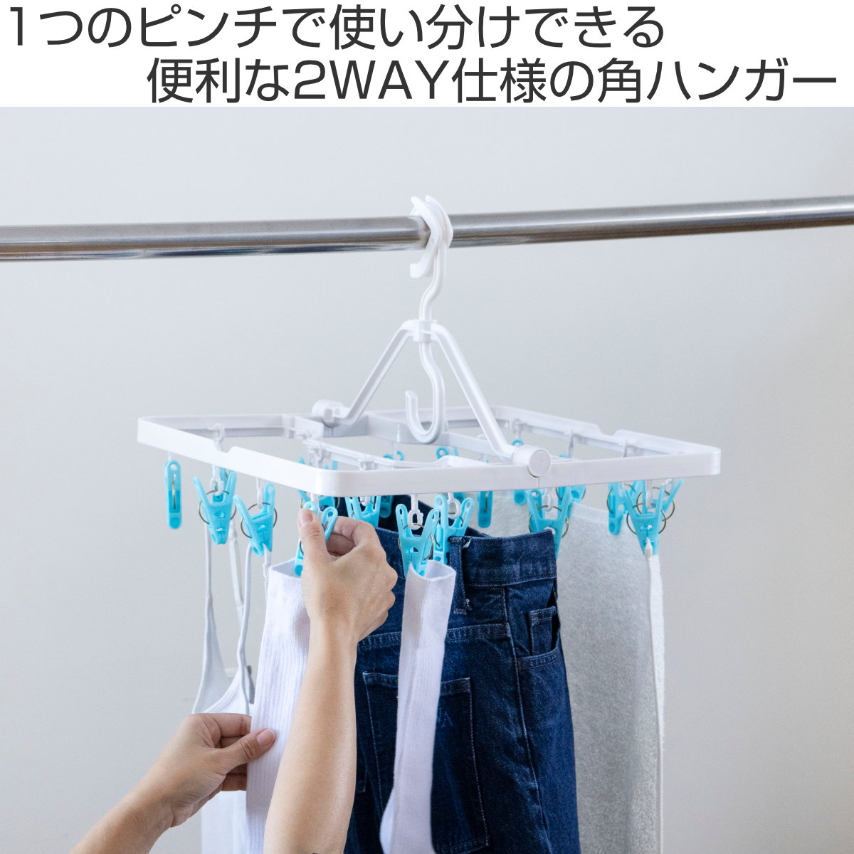 2WAYピンチで快適に干せる角ハンガー 20ピンチ