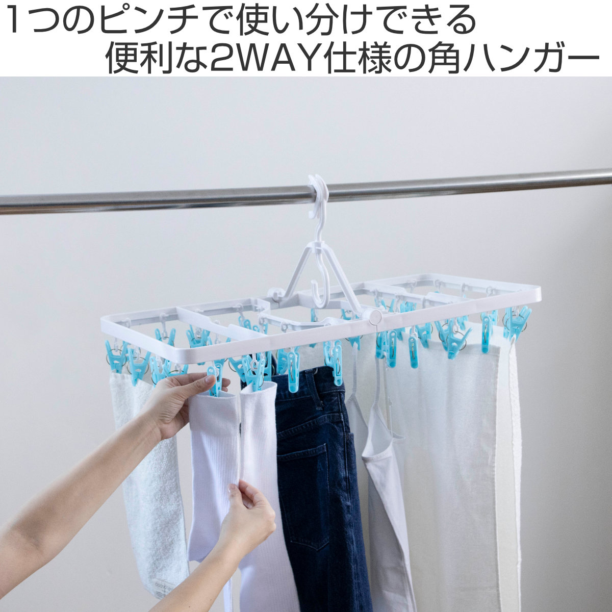 2WAYピンチで快適に干せる角ハンガー 40ピンチ