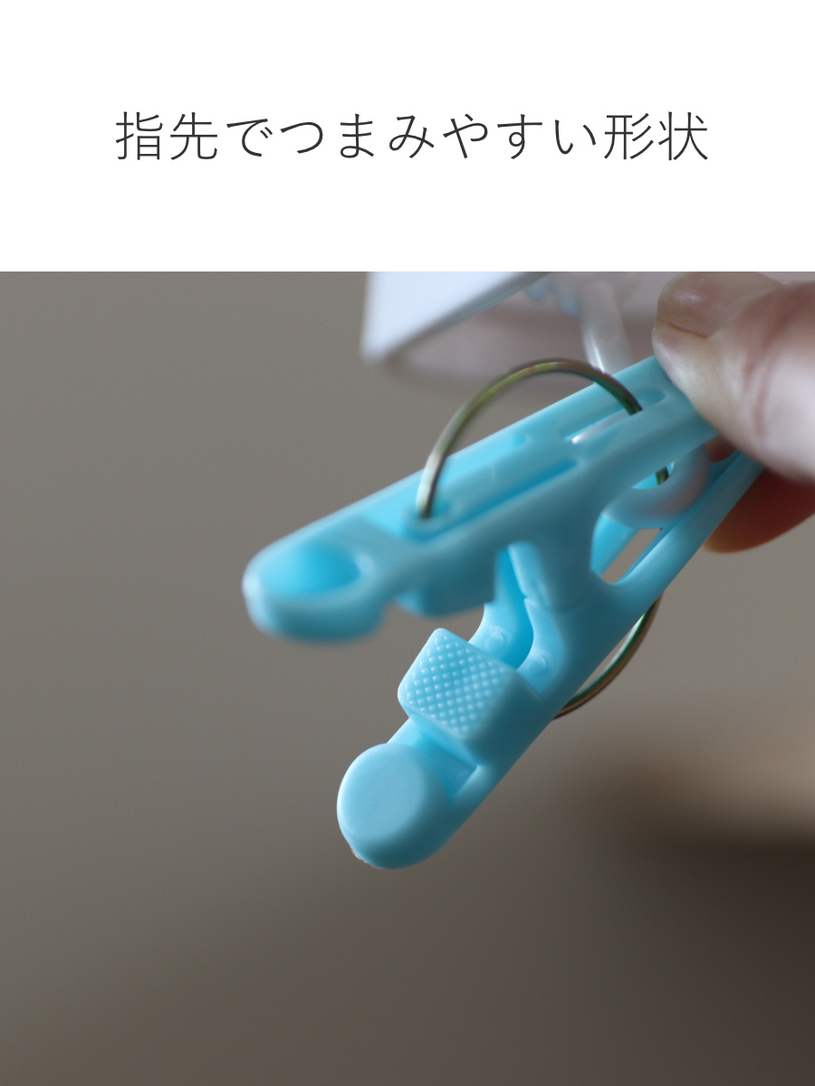ピンチの奥は凹凸形状で、タオルや厚手の衣類もしっかり固定できます。先端は跡が付きにくく、デリケートな衣類もやさしく挟めるため、衣類に合わせて使い分けが可能です。