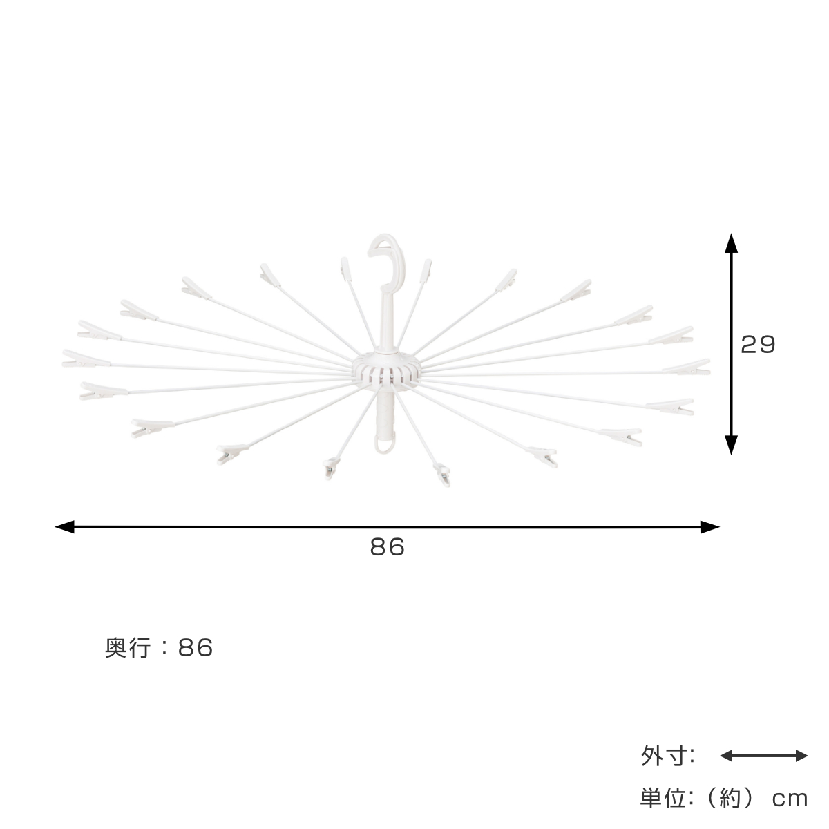 ●洗濯物のズレ落ちを防ぐ便利なクリップ付きで、安心して干せます。