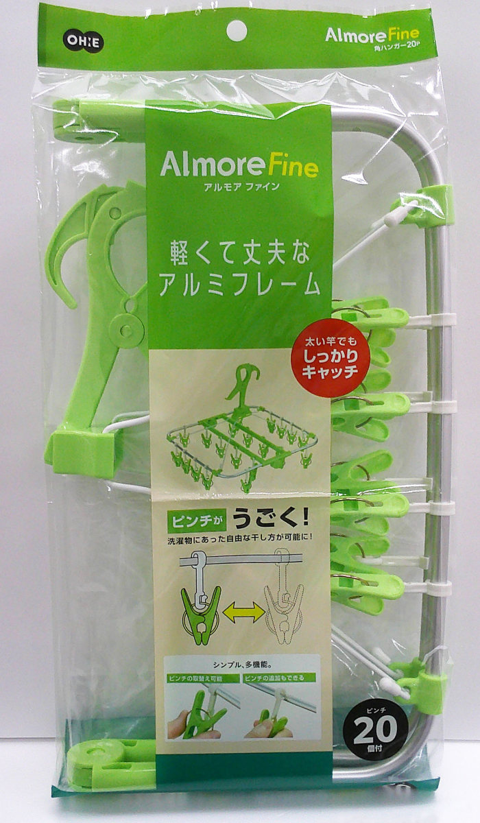 軽くて丈夫なアルミ角ハンガー 20ピンチ