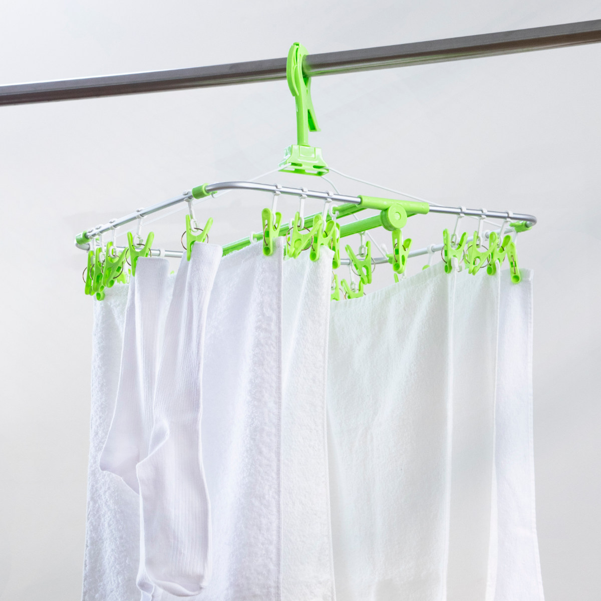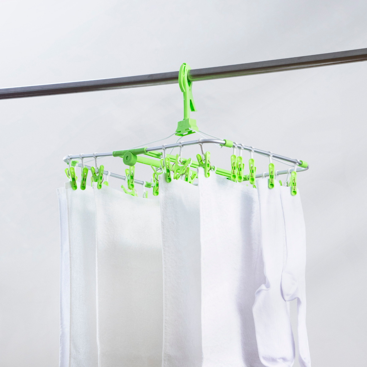 ピンチは洗濯物に合わせてスライドできます。それぞれに合った自由な干し方が可能です。