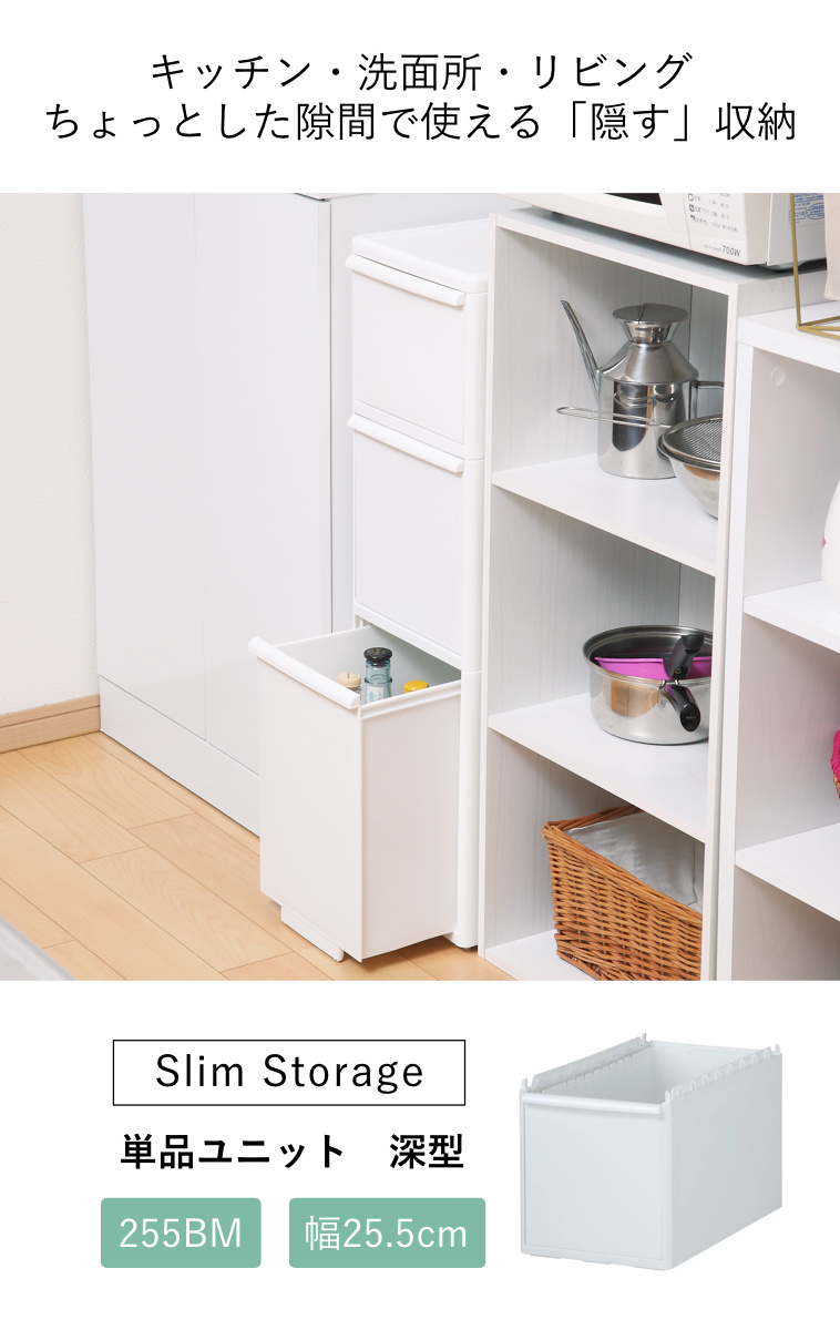 ●「スリムストレージシリーズ」幅25.5cmの分別深型ユニットです。