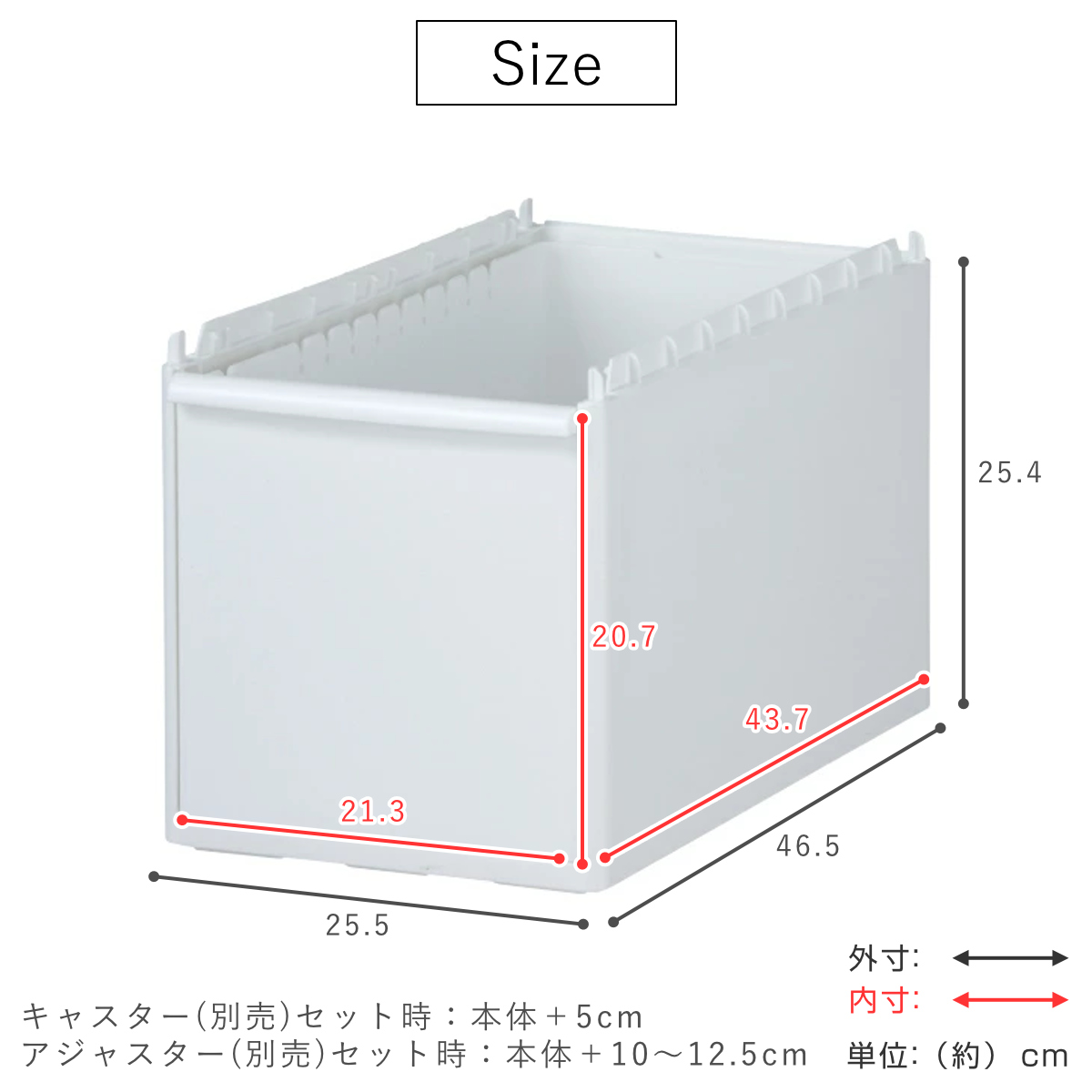 - 外寸:約幅25.5×奥行46.5×高さ25.4cm