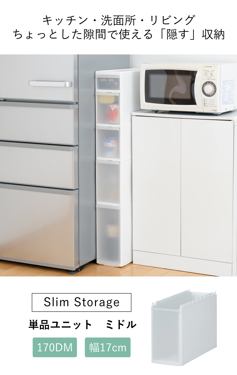 ●「スリムストレージシリーズ」幅17cmのミドルユニットです。