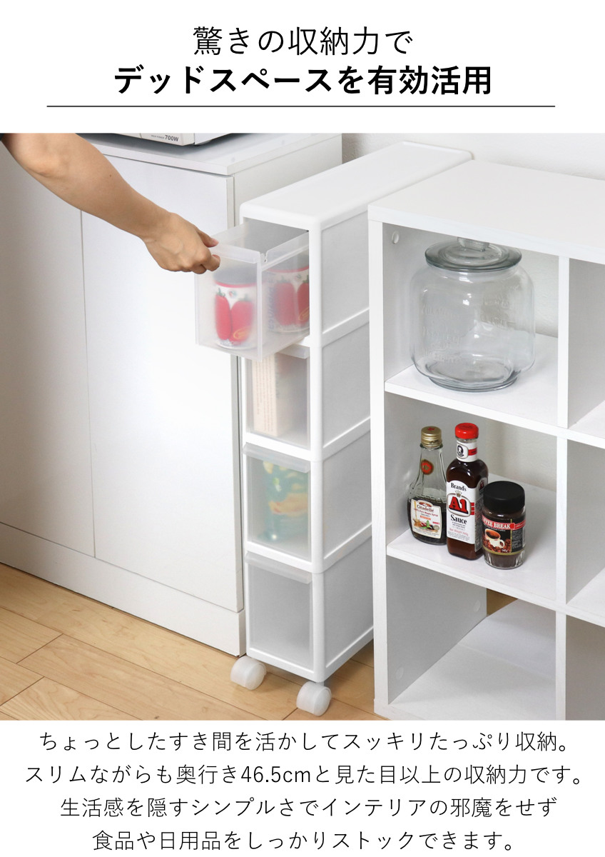 幅わずか14cmでもたっぷり収納!隙間を有効活用