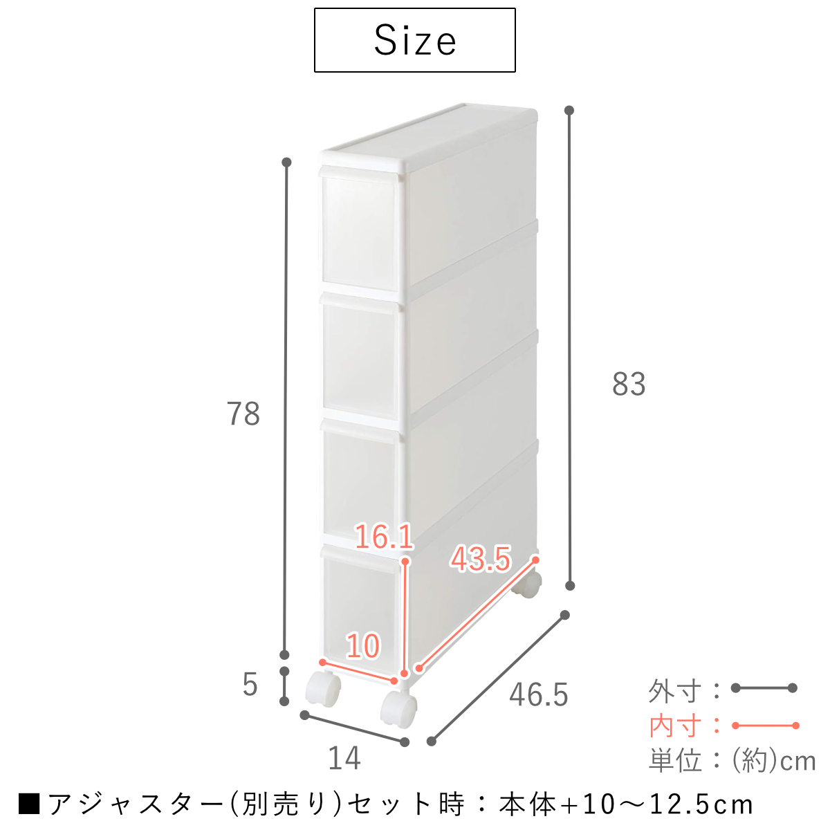 - 約幅14×奥行46.5×高さ83cm