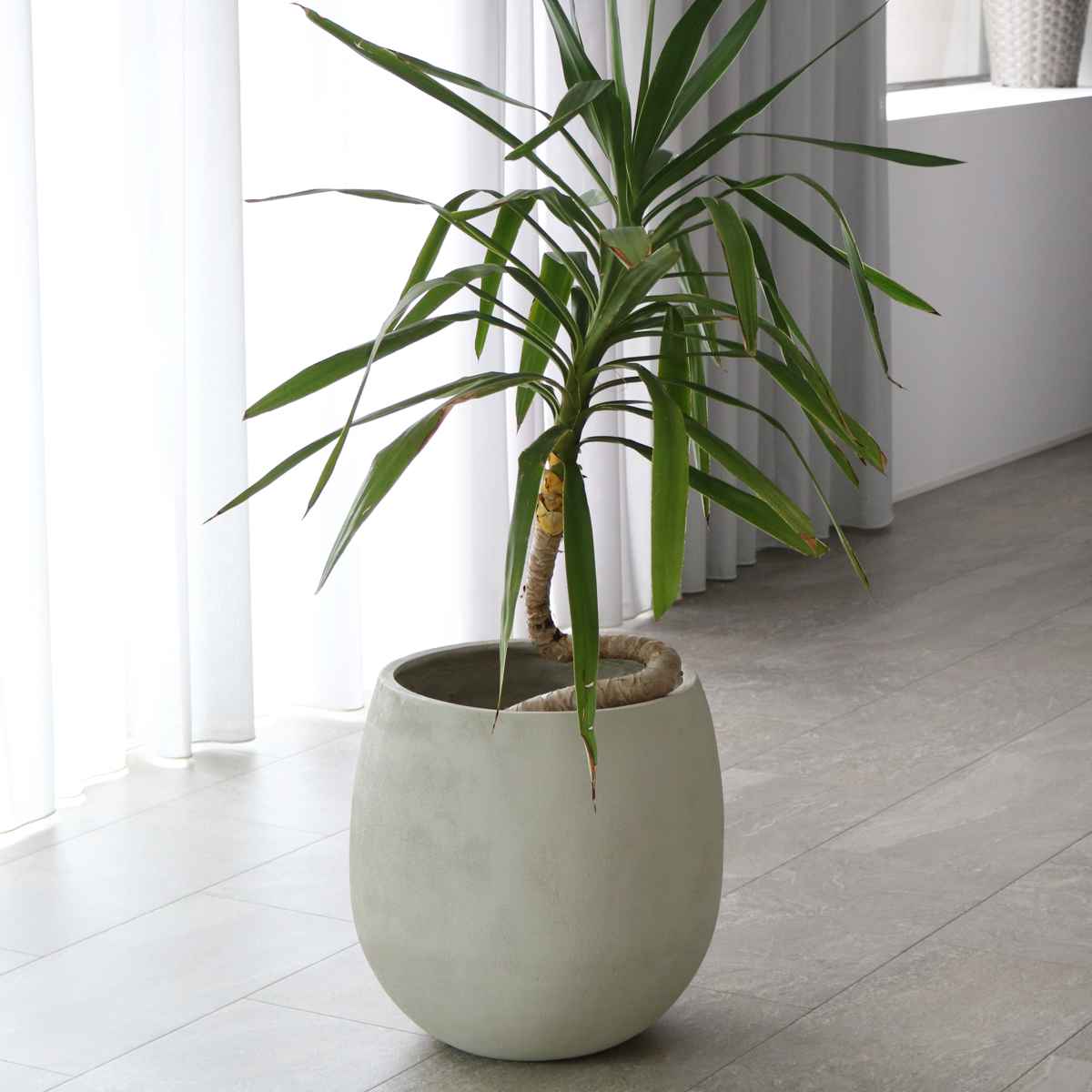 置くだけで絵になるドロップ型のプランターです。石調仕上げのザラッとした手触りは、まるで本物の天然石のような高級感があります。ナチュラルにもモダンにも調和し、空間に上質な雰囲気をもたらします。