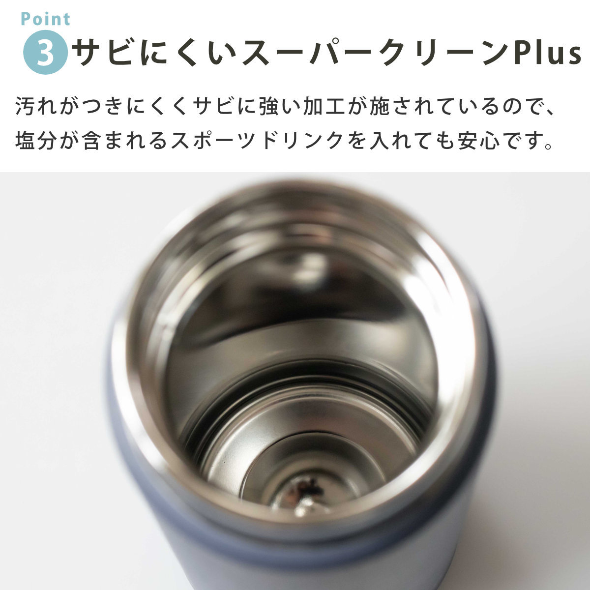 | 材質 | 本体:ステンレス鋼(SUS304) せんセット:ポリプロピレン パッキン部:シリコーンゴム BPAフリー |
