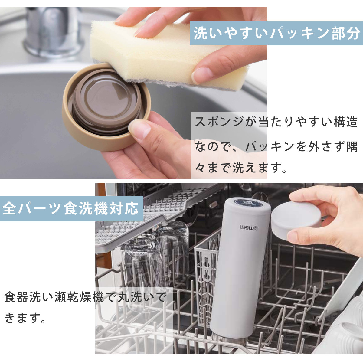 食洗機もOK!お手入れ楽々なパッキン一体型せん搭載