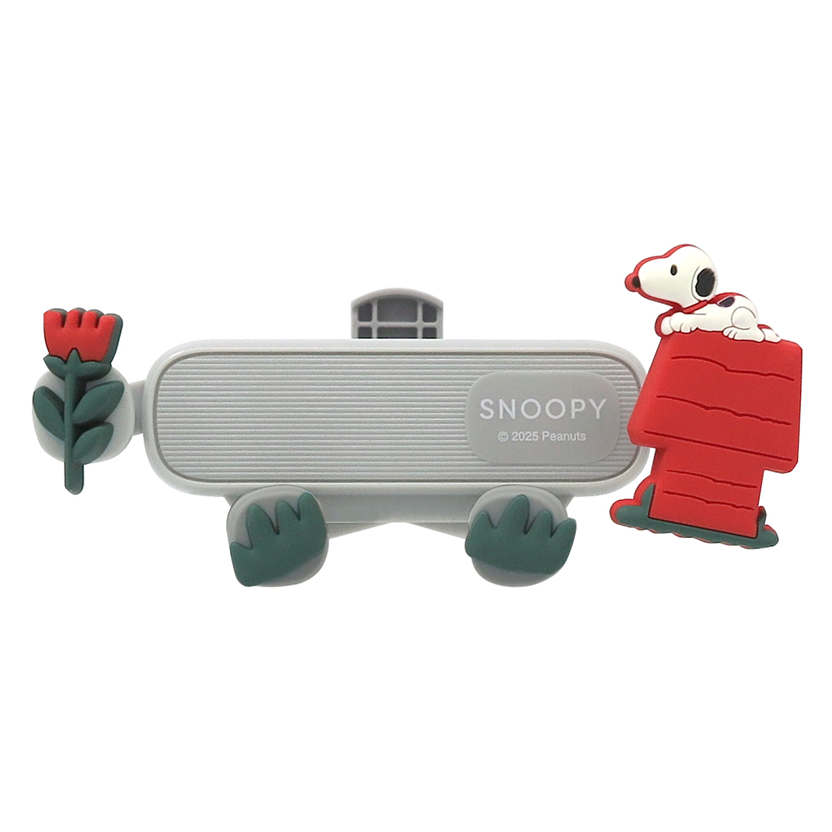 スヌーピーの車用スマホホルダーです。スマホを置くだけでしっかりとホールドしてくれます。エアコンの吹き出し口に背面のクリップで簡単に取り付けることができ、運転席や助手席から手が届きやすい位置にスマホをしっかり固定できます。