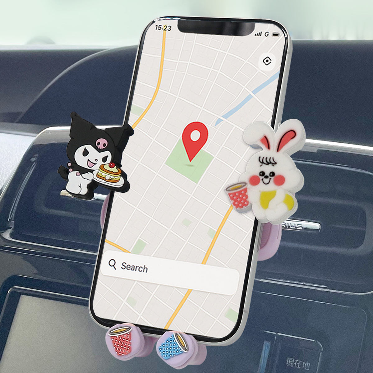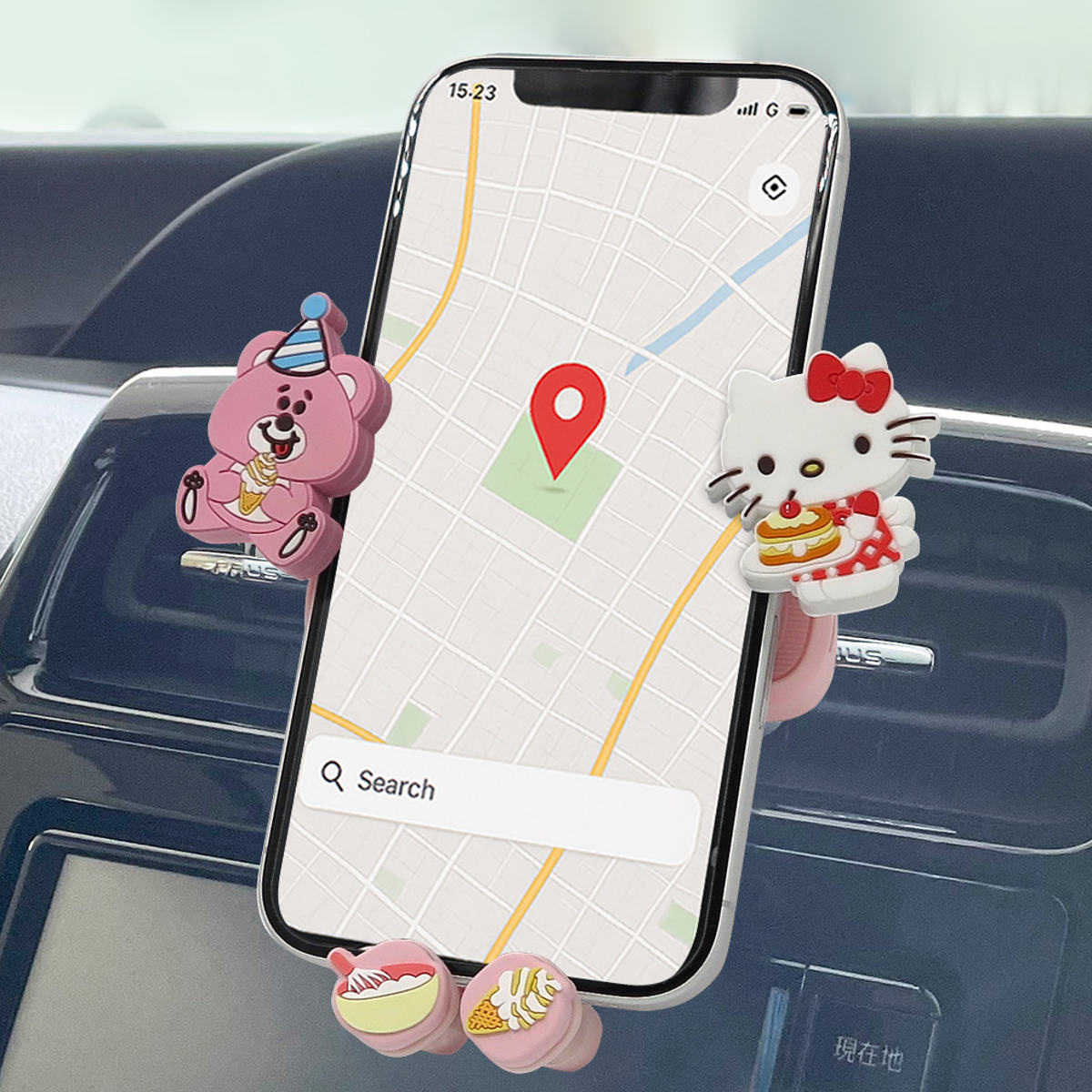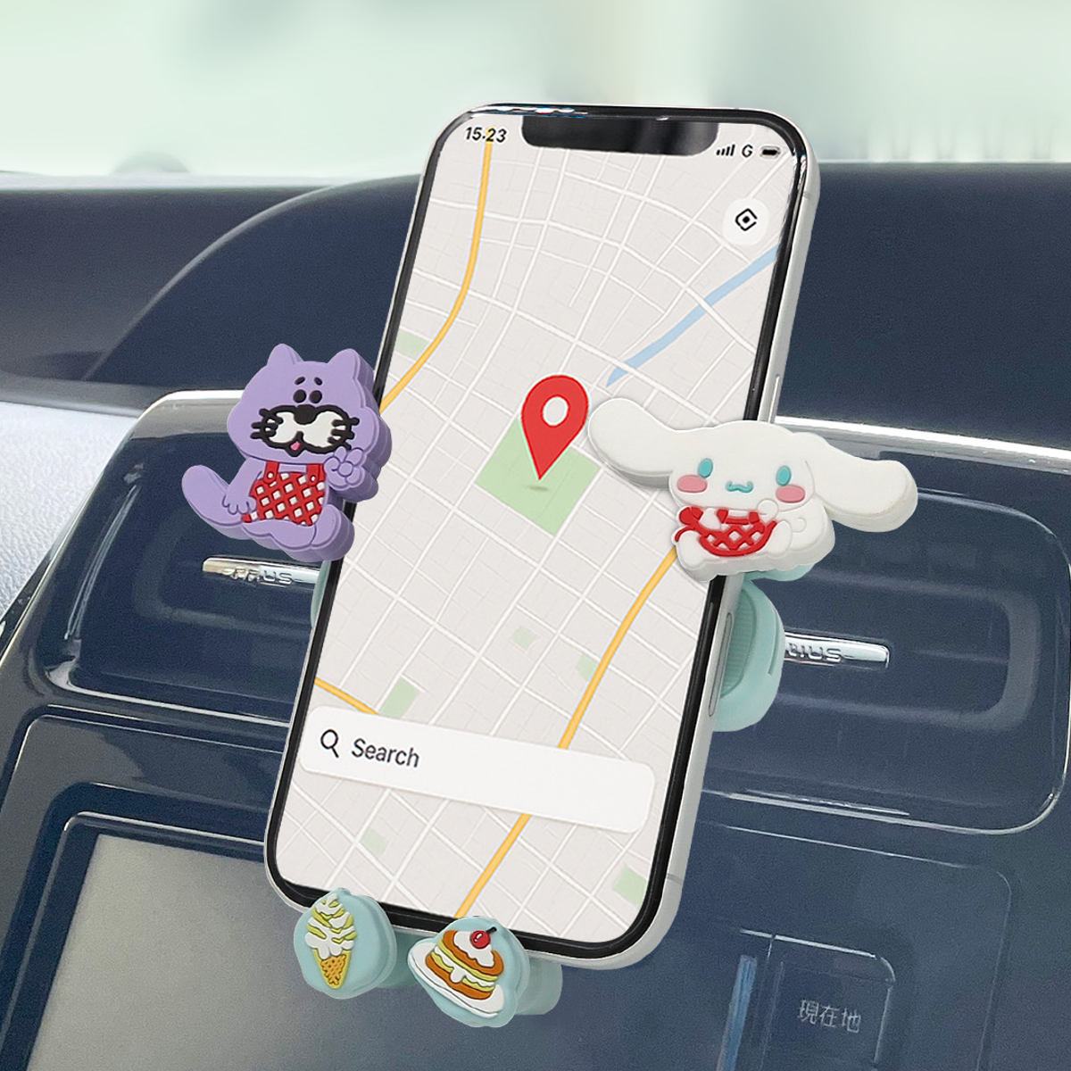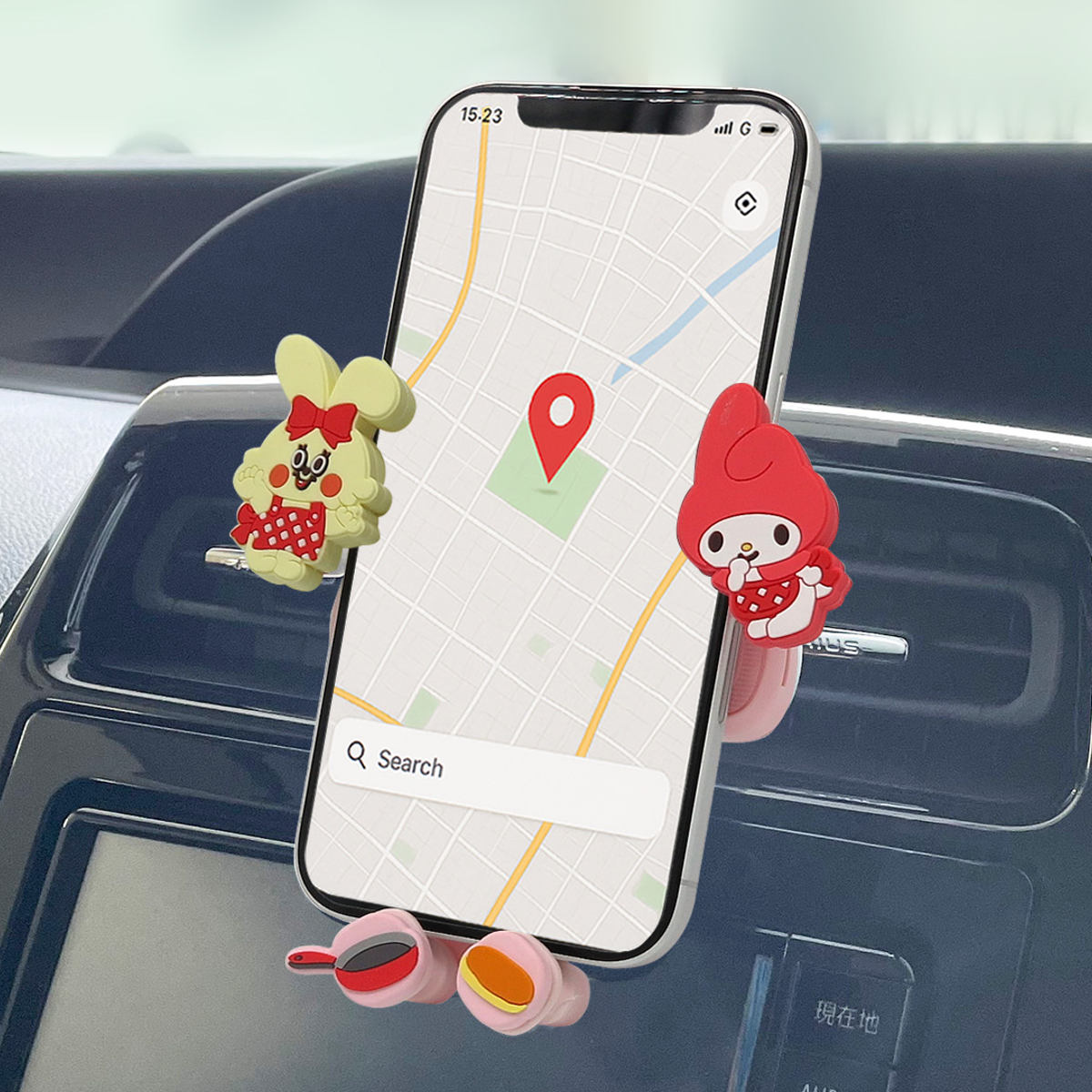 サンリオキャラクターの車用スマホホルダーです。スマホを置くだけでしっかりとホールドしてくれます。エアコンの吹き出し口に背面のクリップで簡単に取り付けることができ、運転席や助手席から手が届きやすい位置にスマホをしっかり固定できます。