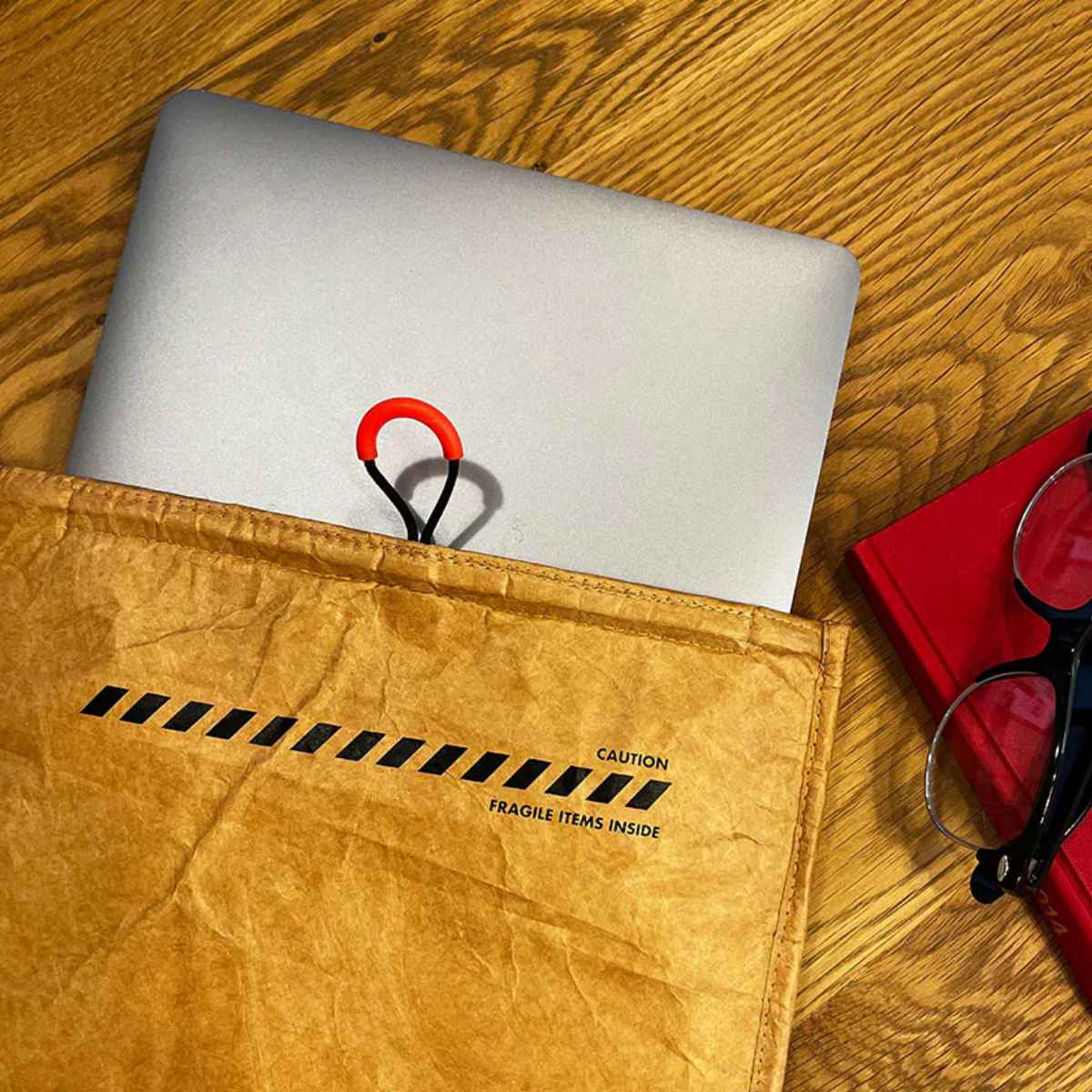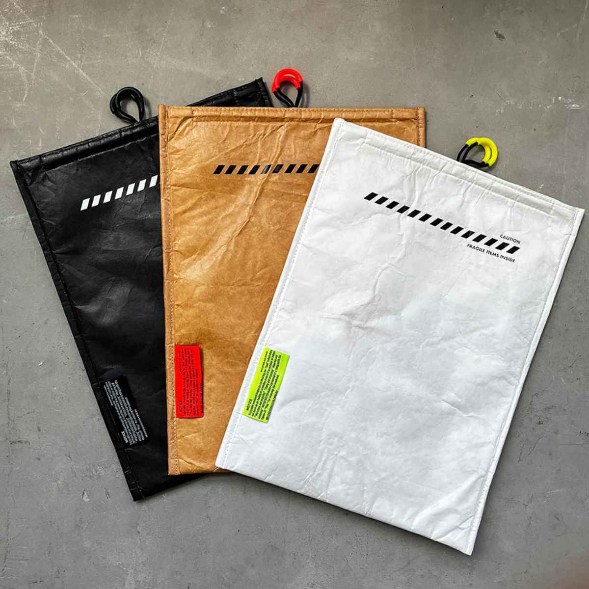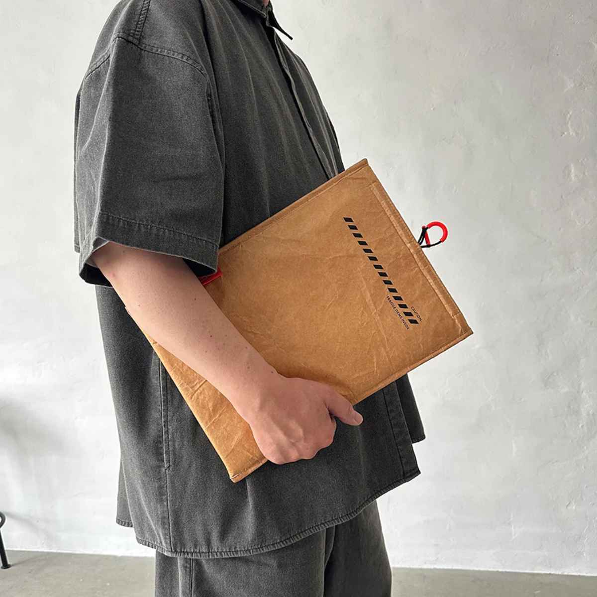 建材や宇宙服などにも使われているHDPE(高密度ポリエチレン)素材を使用しています。軽さ・強度・耐水性に優れており、クッション性もあるのでタブレット・ノートパソコン・CD・書類などの大切な物をしっかり守ります。