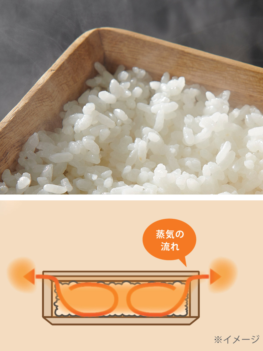 蒸気の力で炊きたてのようにふっくら