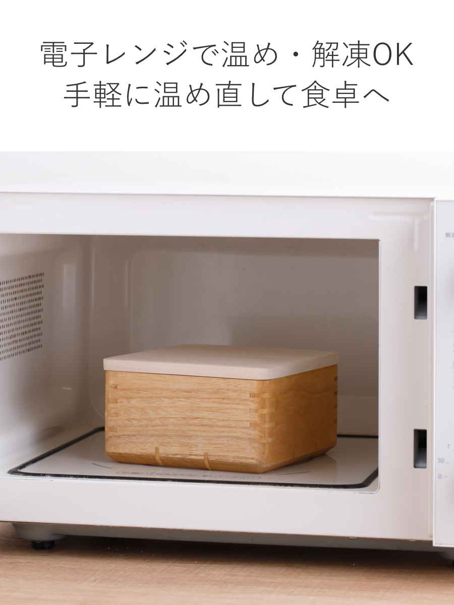 桐は熱伝導率が低いため、電子レンジで温めても容器自体が熱くなりにくいのが特長です。温め直し後もすぐに取り出しやすく、毎日の食事シーンで安心して使えます。