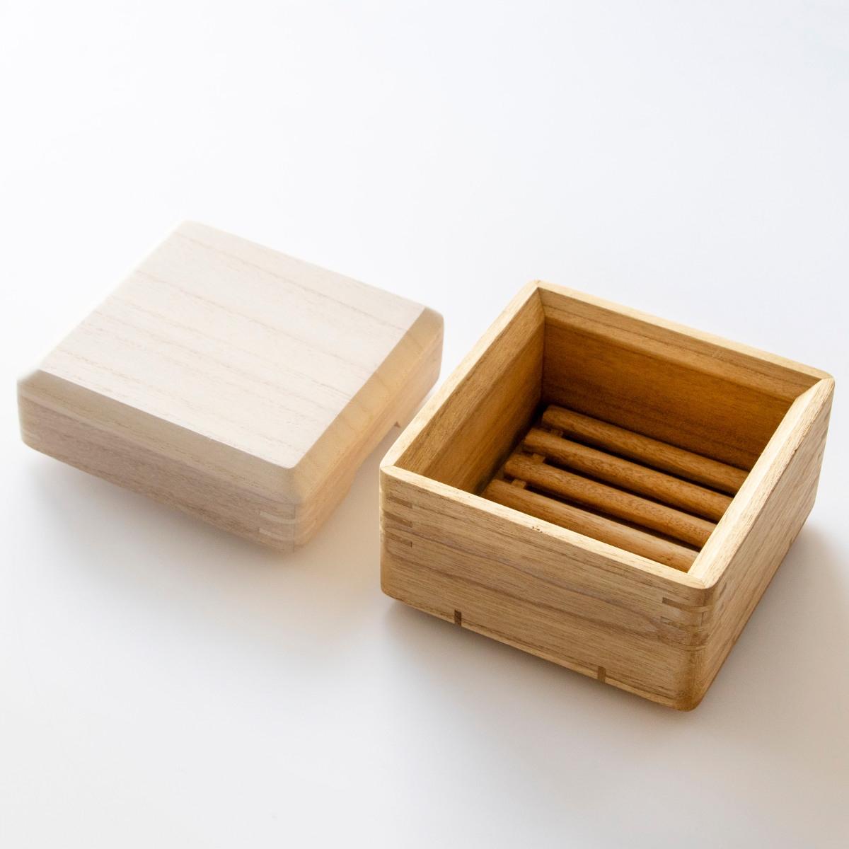 天然桐材を使用しています。角は丁寧に面取りがされており、手にやさしく馴染みます。また表面は塗装が施されているため美しく、すべすべとした滑らかな触り心地です。