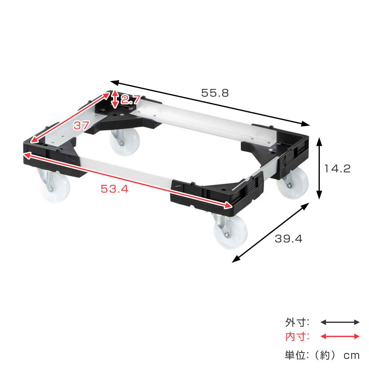 平台車なのでどの角度からでも積み下ろしができます。幅53×奥行36.6cmのコンテナがぴったり収まります。