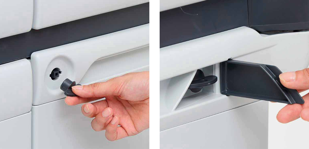 ●使用済みのリネン類が外部に露出しないようにドア付き仕様で、衛生面や美観に配慮されています。