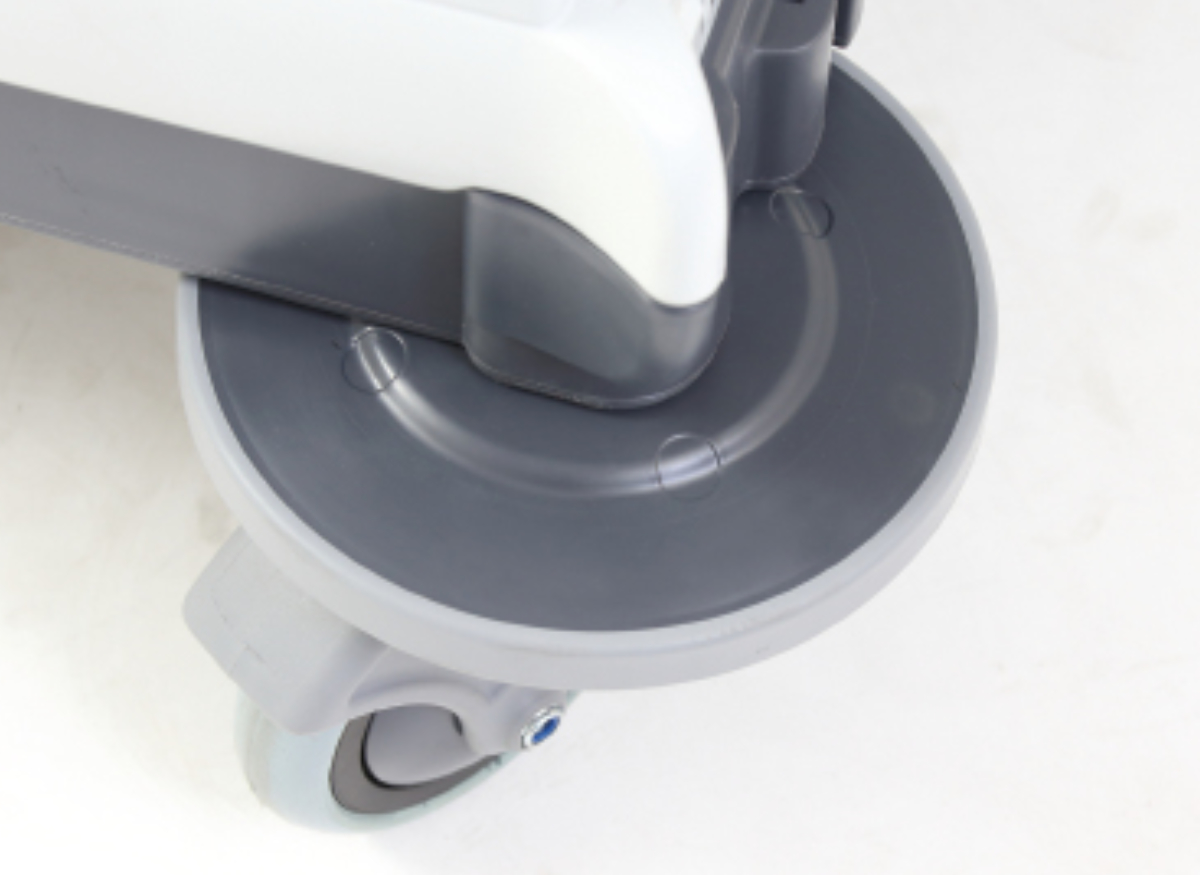 ●直径20cmの大口径バンパーを採用し、壁や什器に当たっても跡が残りにくいノーカーボンゴム素材で保護性を高めています。