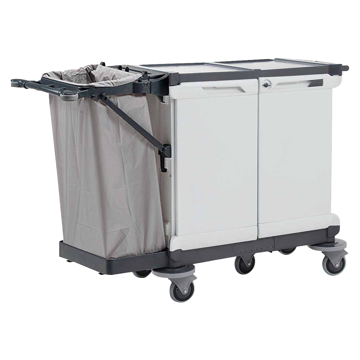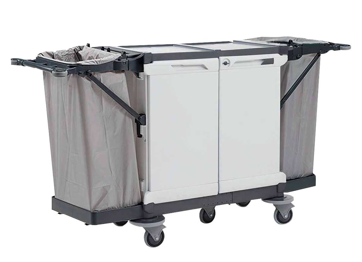 使用済みのリネン類(シーツ、タオル、ユニフォームなど)が外部に露出しないようにドア付き仕様で、衛生面や美観に配慮されています。 リネンが隠れるため、廊下や客室付近での移動時にも清潔感のある外観を保てます。鍵付きで施錠後に鍵を取り外して収納出来るので防犯性もアップします。