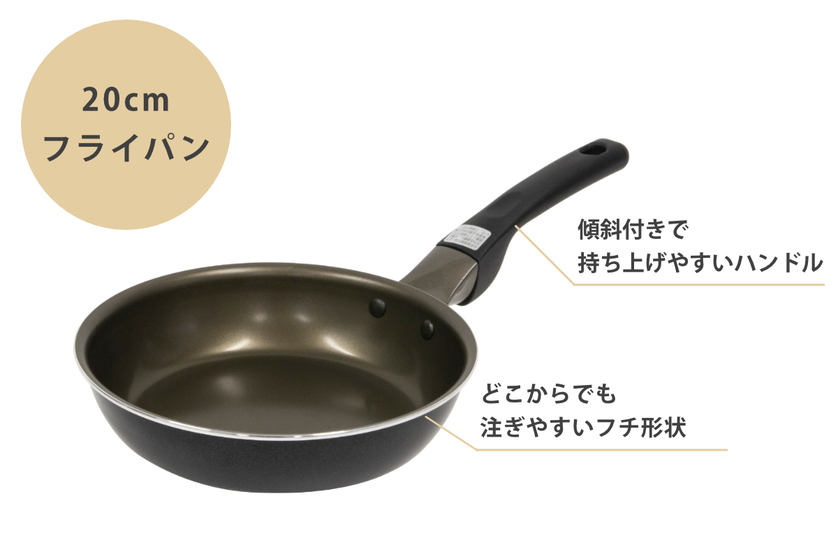 PFAS(PFOA/PFOS)のようなふっ素樹脂塗料を使っておらず、人体に安全なフライパンです。