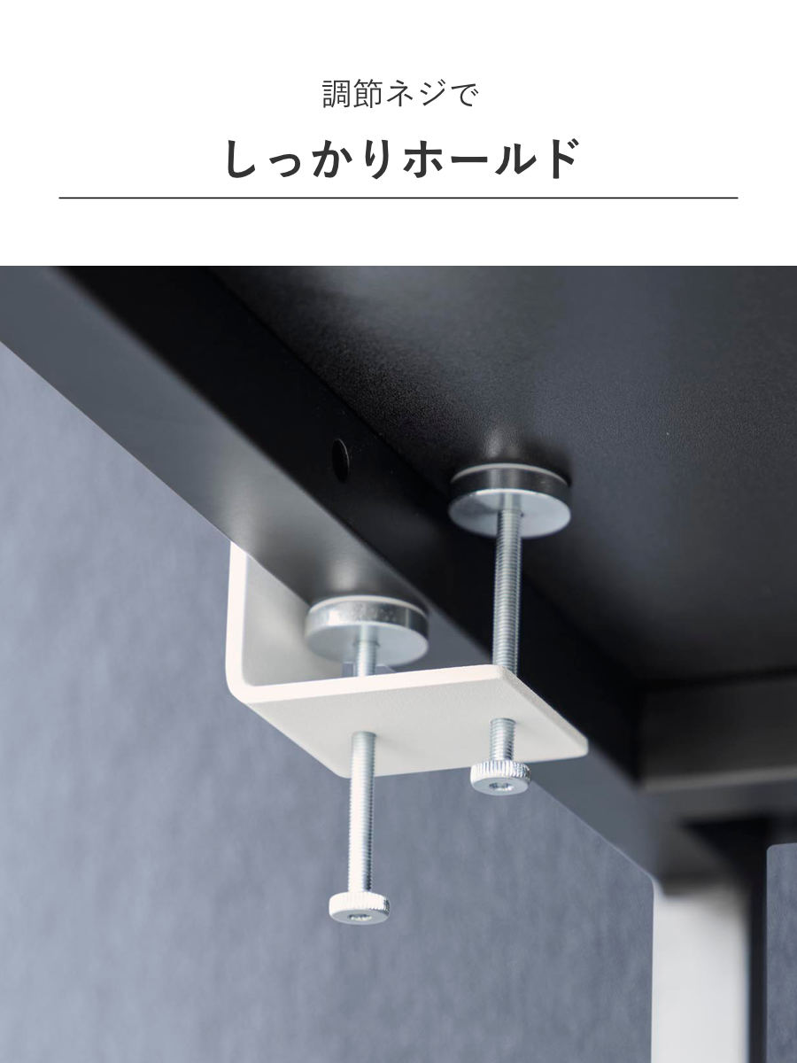 | 備考 | 【取り付け可能な場所】 天板の厚さが1~5.5cm(幕板やパイプ等を含む) 幅5cm以上(脚を含まず) 奥行き10cm以上の平らなデスクなど ※設置場所の構造や材質、形状によっては取り付けできない場合があります。 |