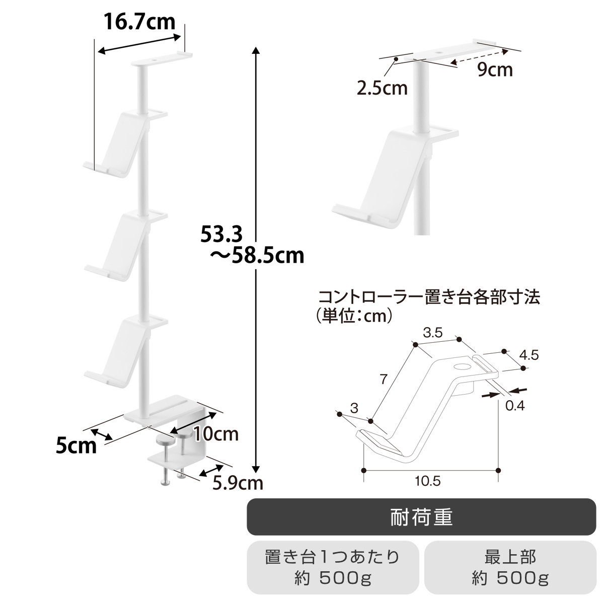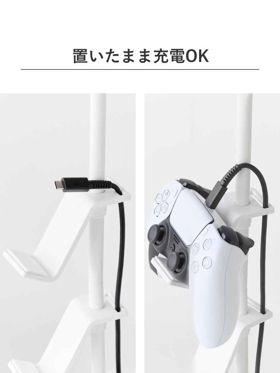 | 材質 | 本体:スチール(粉体塗装) コントローラー置き台×3:ABS樹脂 ストッパー・緩衝材:シリコーンゴム |