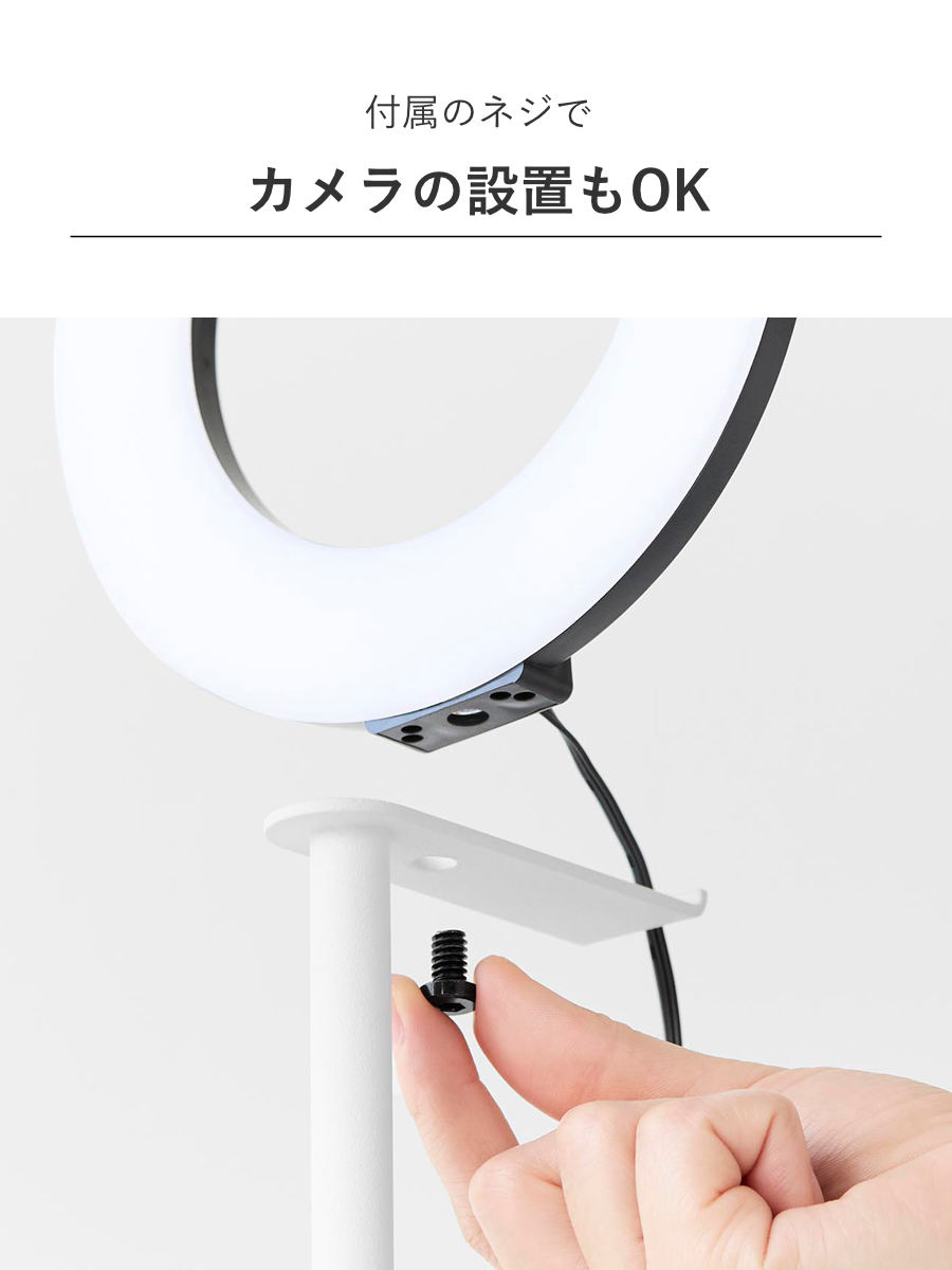 付属のネジでリングライトやWEBカメラの設置も可能です。
