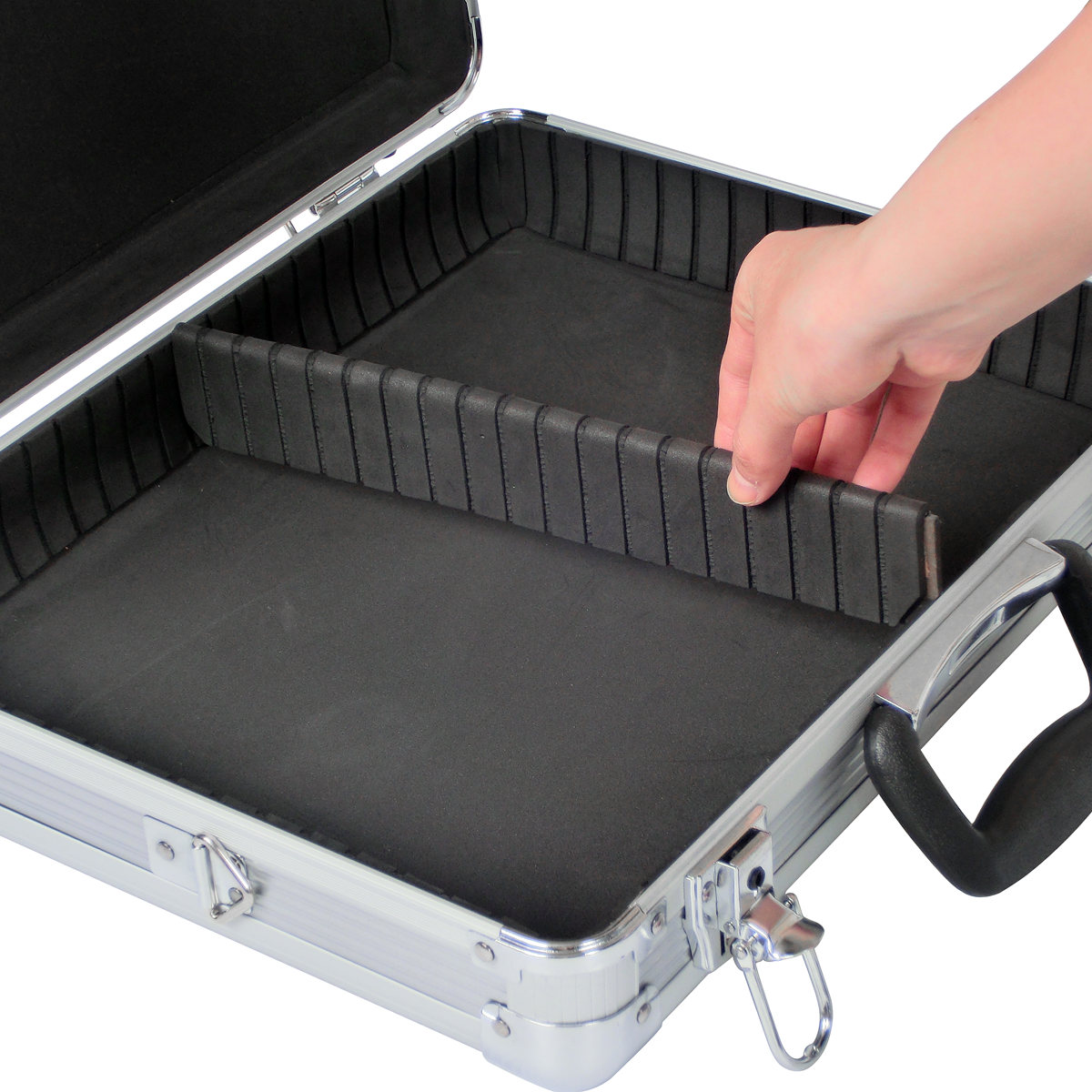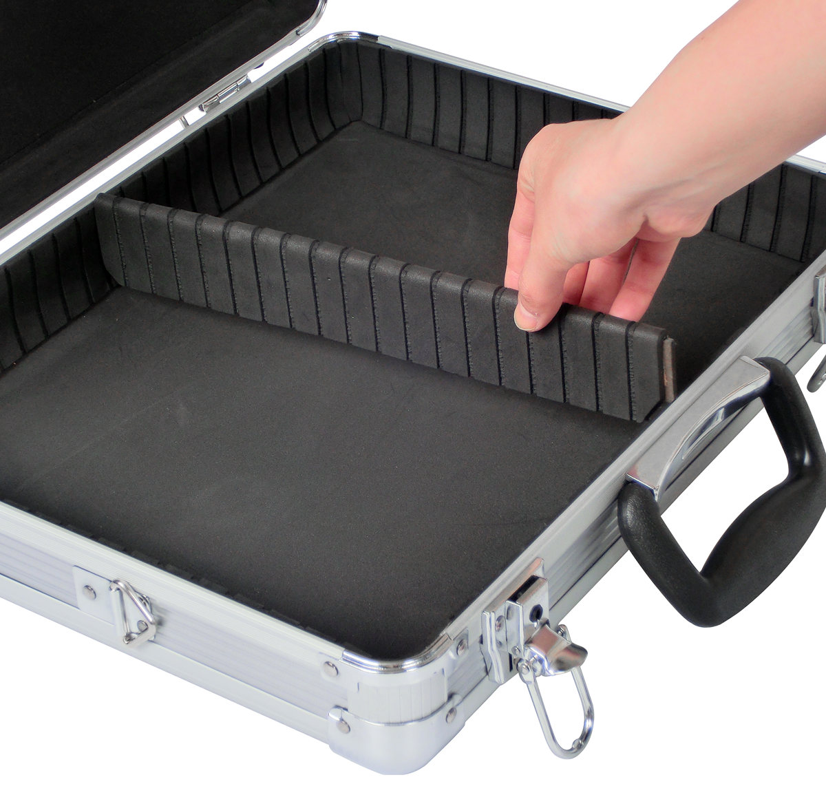 アルミならではの高級感と軽さ、堅牢さを兼ね備えたツールケースです。大工・作業工具や電動工具はもちろん、文具やゲーム機などの収納にも最適です。