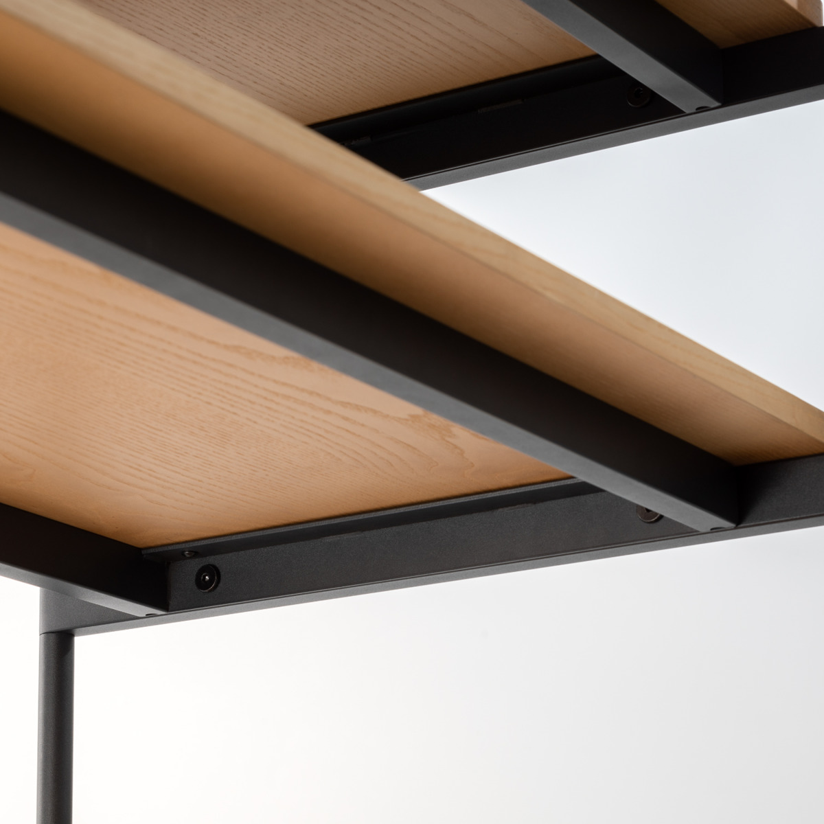 | 材質 | 本体:鉄(粉体塗装) 天板:天然木突板(ラッカー塗装) 芯材:MDF エンドキャップ:ポリプロピレン アジャスター:鉄・ポリプロピレン |