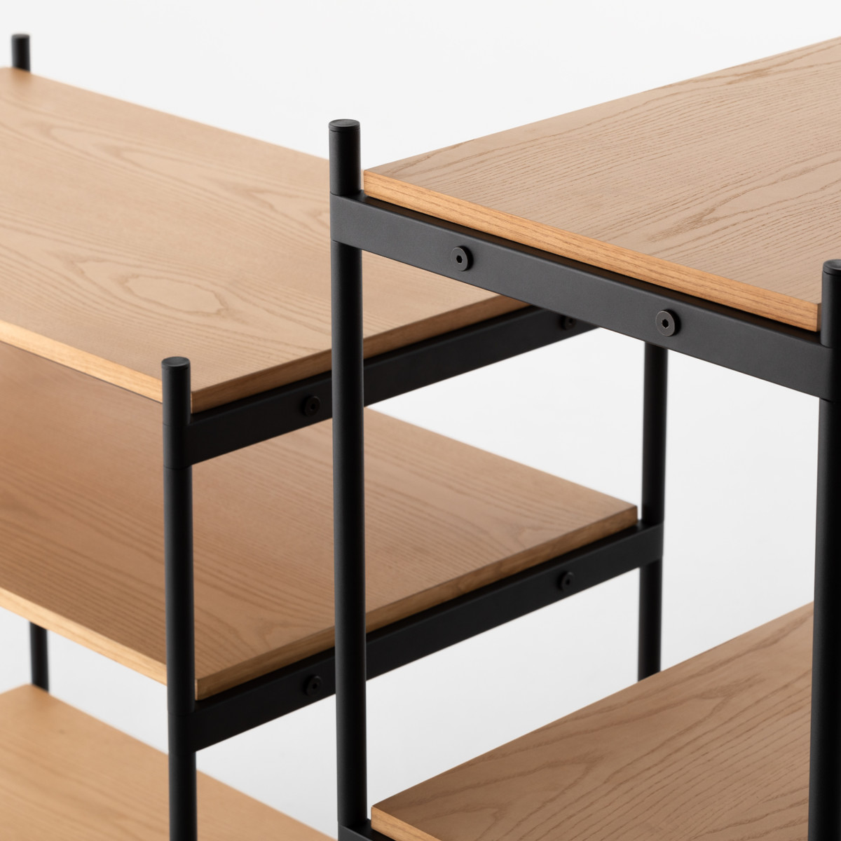 背板とクロスバーのないシンプルな構造なので、前後左右どこからでも物の出し入れができます。前後もなく両面同じデザインなので、お部屋を区切るパーテーションラックとしての使用もおすすめです。