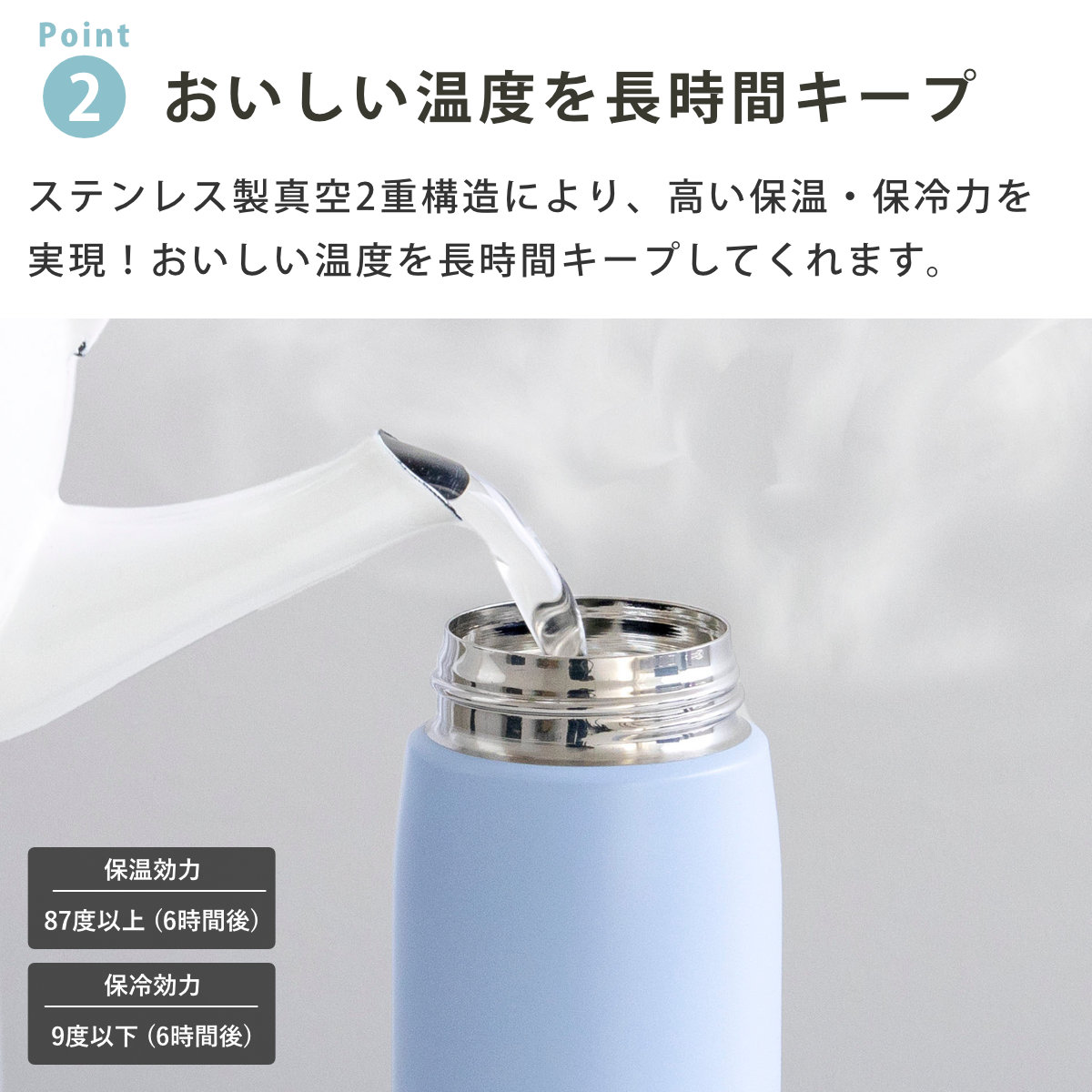 | 保温効力 | 87度以上(1時間) 72度以上(6時間) |