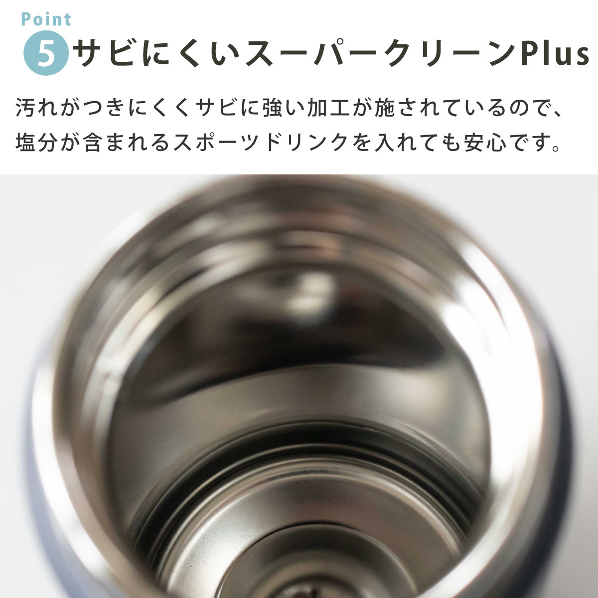 | 材質 | 本体:ステンレス鋼 中栓:ポリプロピレン パッキン:シリコーンゴム BPAフリー |