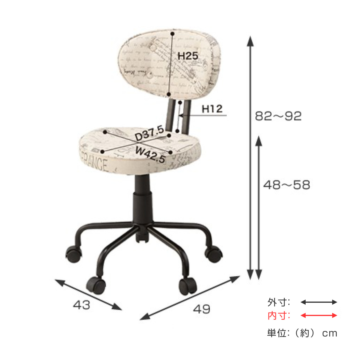 - 約幅43×奥行49×高さ82~92cm