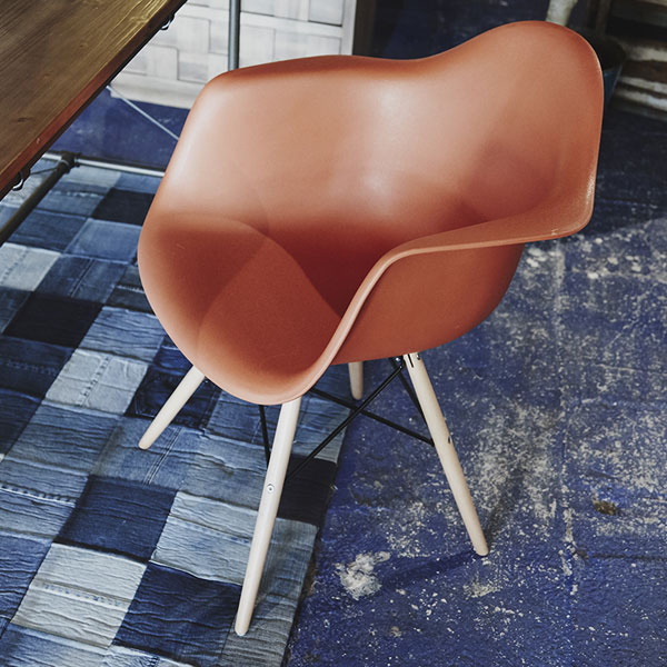 複数の素材を組み合わせた斬新なデザイン。ダイニングチェアとしてはもちろん、色んな使い道がある置くだけでお洒落な雰囲気になるチェアです。