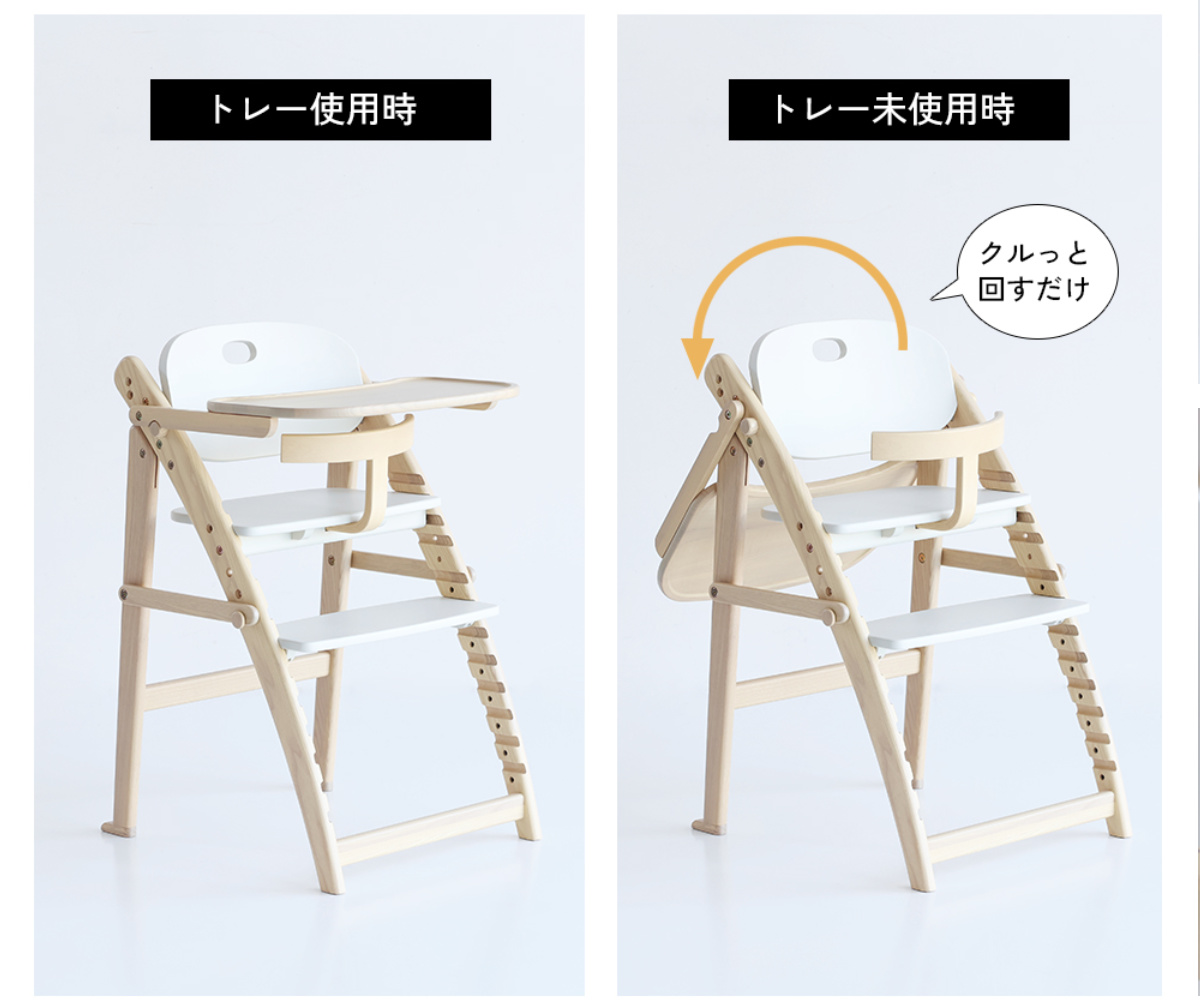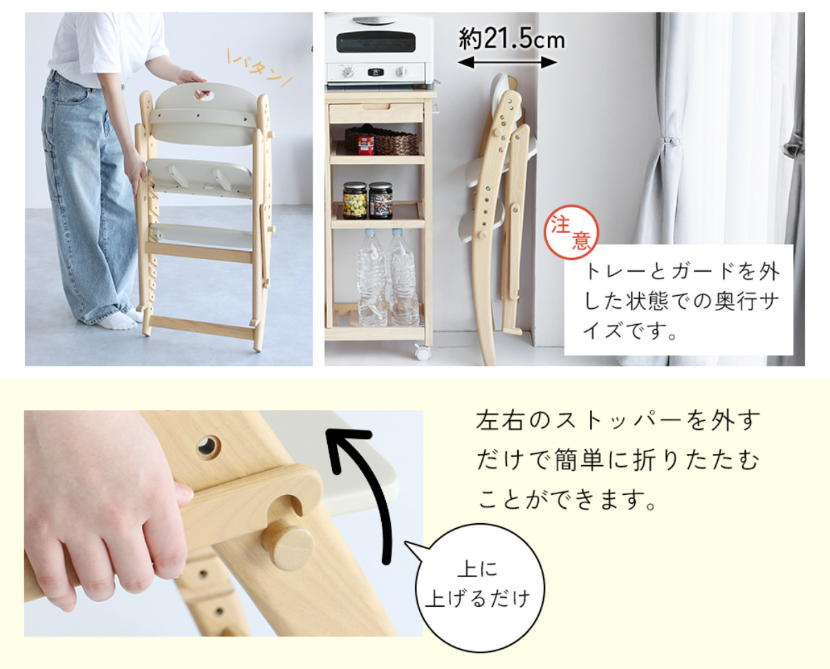 折りたたんで楽々収納!高さ調節可能なハイチェア
