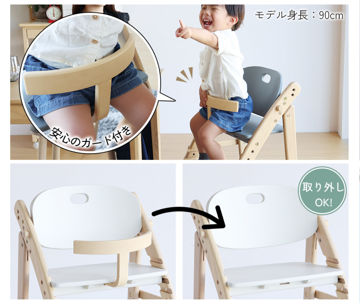 小さなお子さまが身を乗り出しても、ガード付きなので安心です。成長して不要になれば取り外せます。