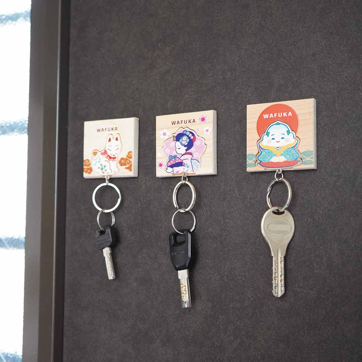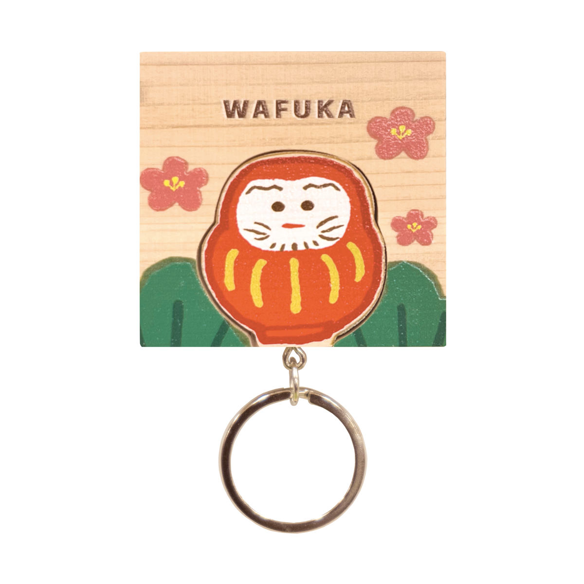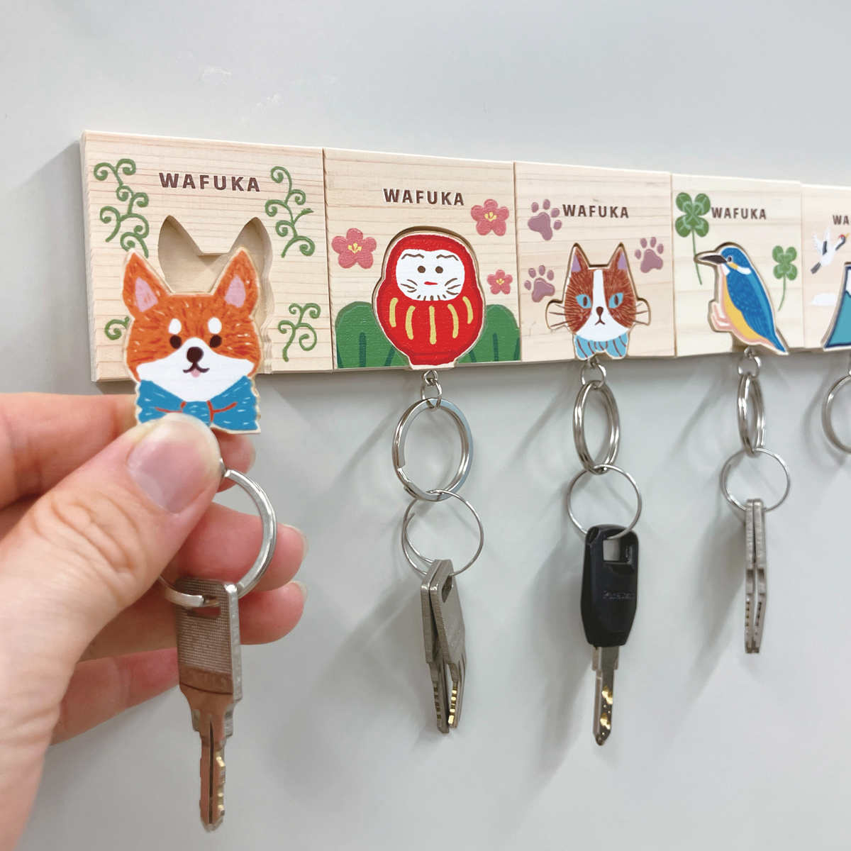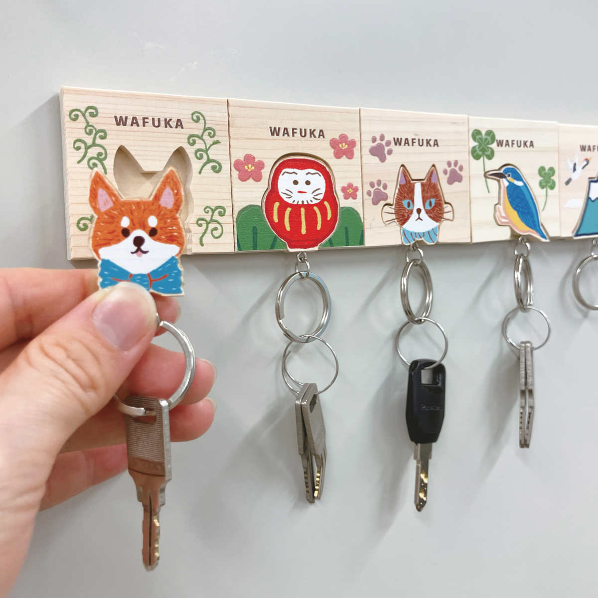 上質な国産檜を丁寧に削り出し、職人がひとつひとつ手仕上げした木製キーホルダーです。鍵部分には、動物やダルマ、力士など、思わず笑顔になる可愛らしいイラストをデザイン。和やかな雰囲気と遊び心を添え、持ち歩くたびに小さな癒しを感じられます。
