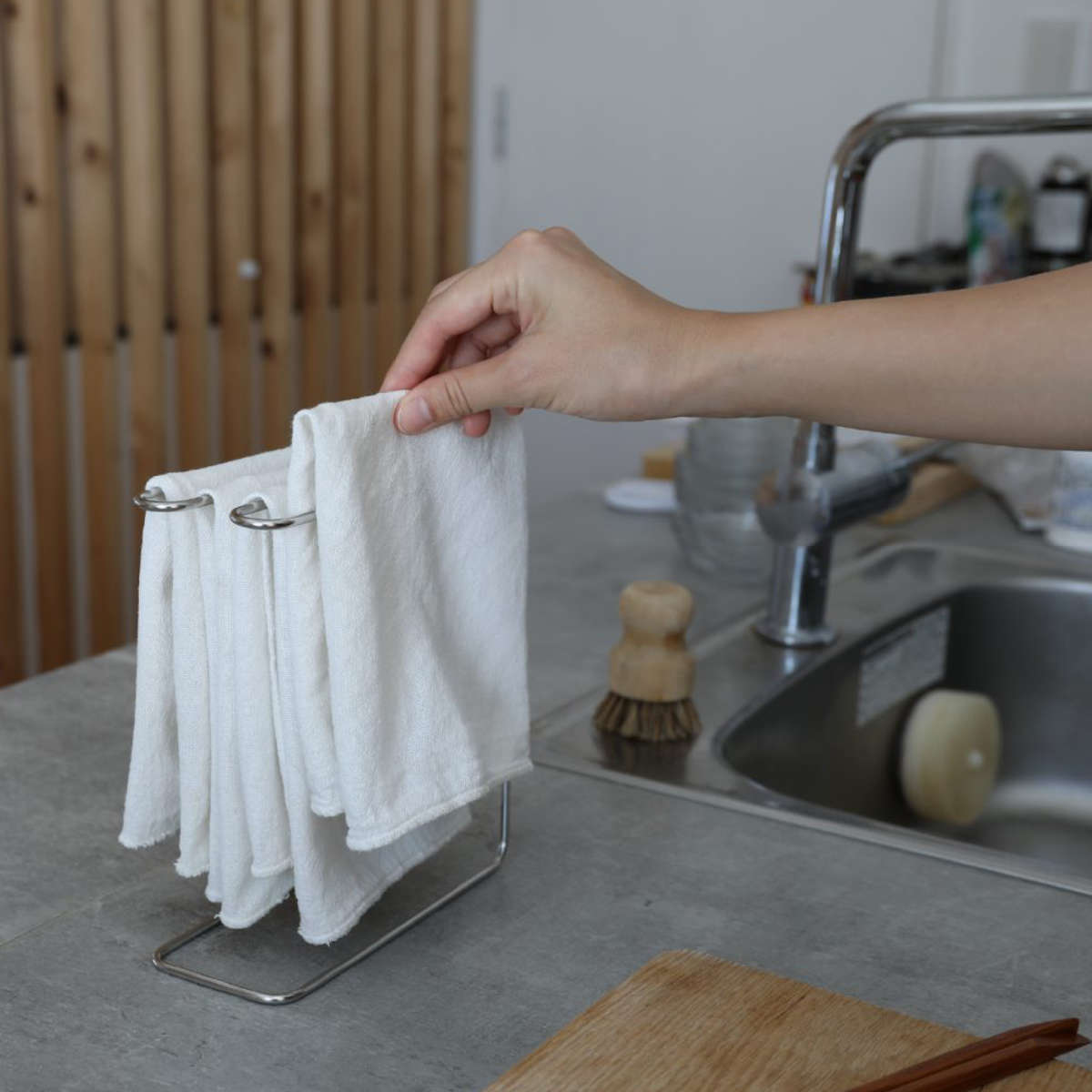 出しっぱなしでも美しい 3通りに使えるふきんスタンド
