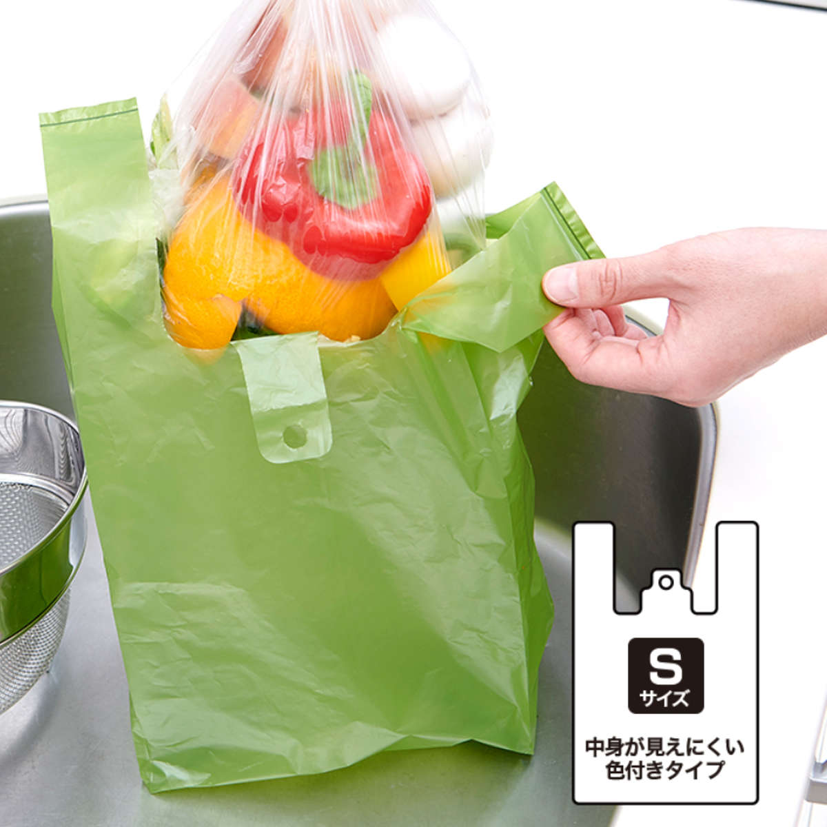 色付きの袋で中身が見えにくく、生ゴミや使用済みオムツなども目にせずに処理できます。ゴミ箱の中や持ち運び時も中身が見えないので、来客時や外出時も安心です。