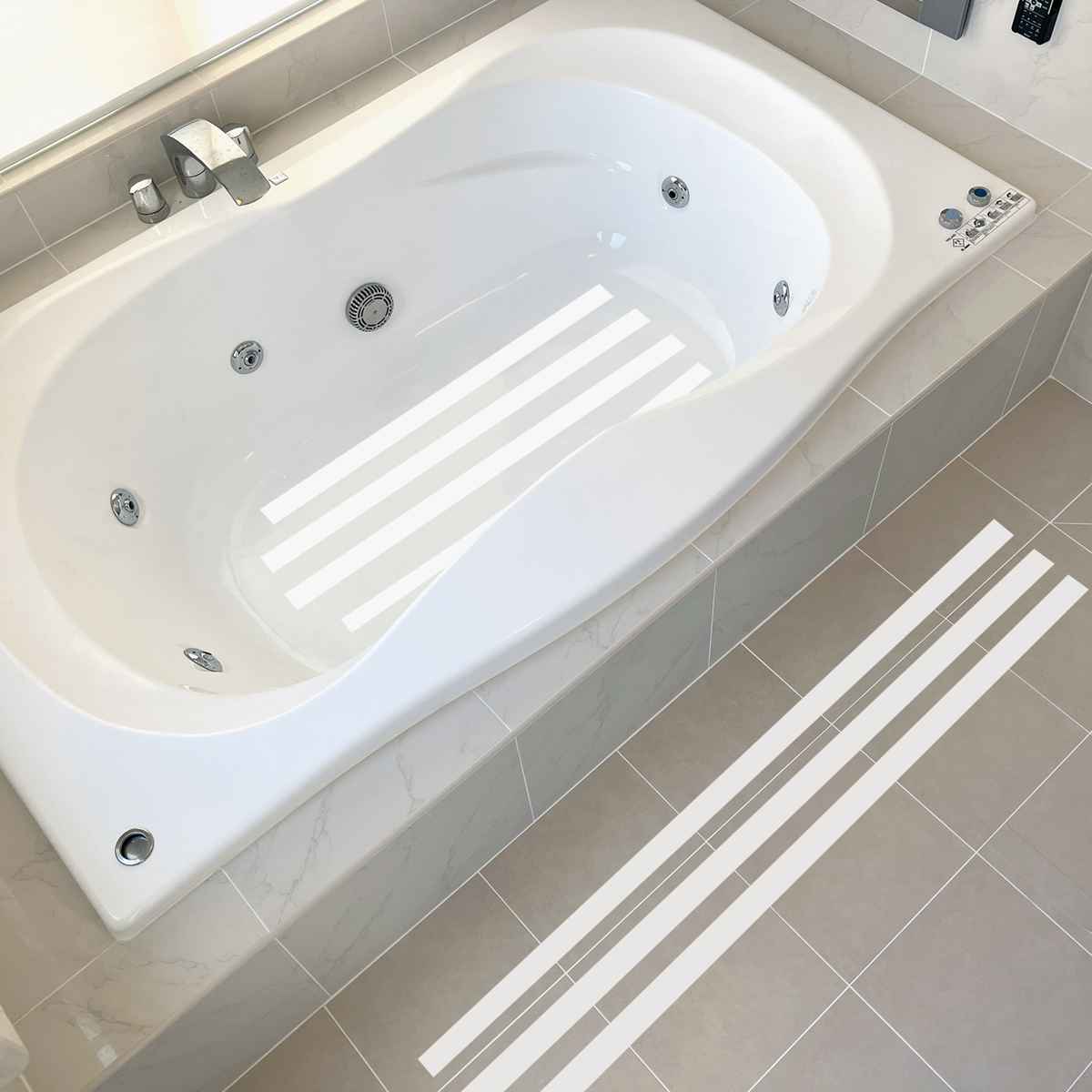 お風呂の滑りやすい場所に貼ることで、足裏が滑りにくくなり転倒リスクを減らします。ご年配の方やお子さまのバスタイムに安心をもたらします。