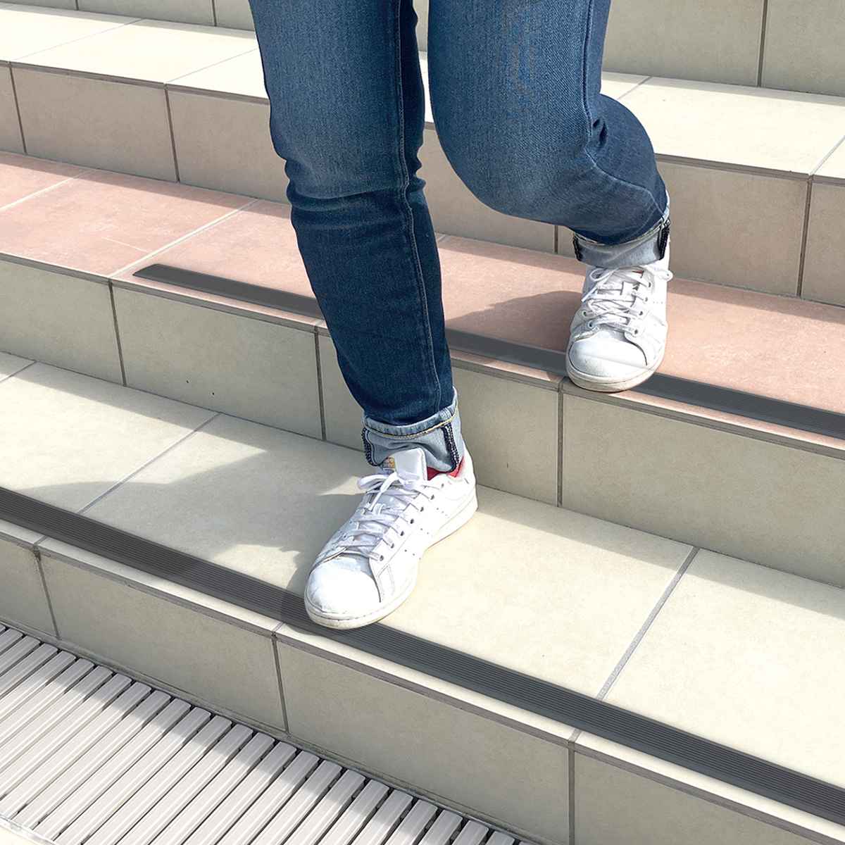 階段や段差など滑りやすい場所に貼るだけで、すべり止め効果を発揮します。粘着力が強いので屋外でも屋内でも使用でき、転倒防止に役立ちます。