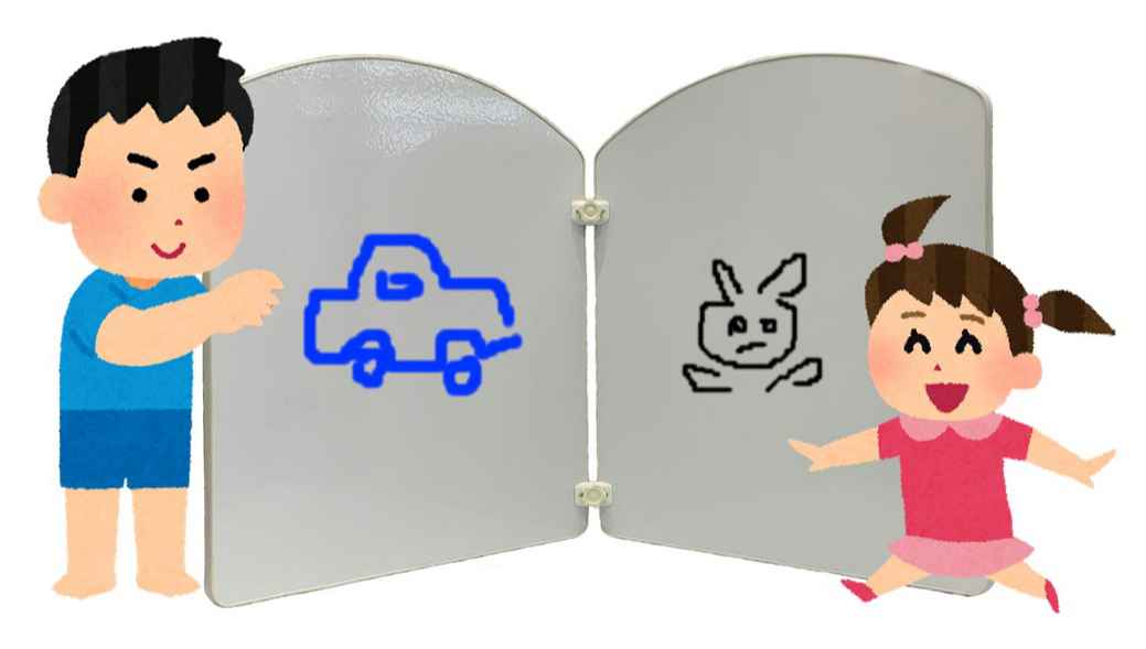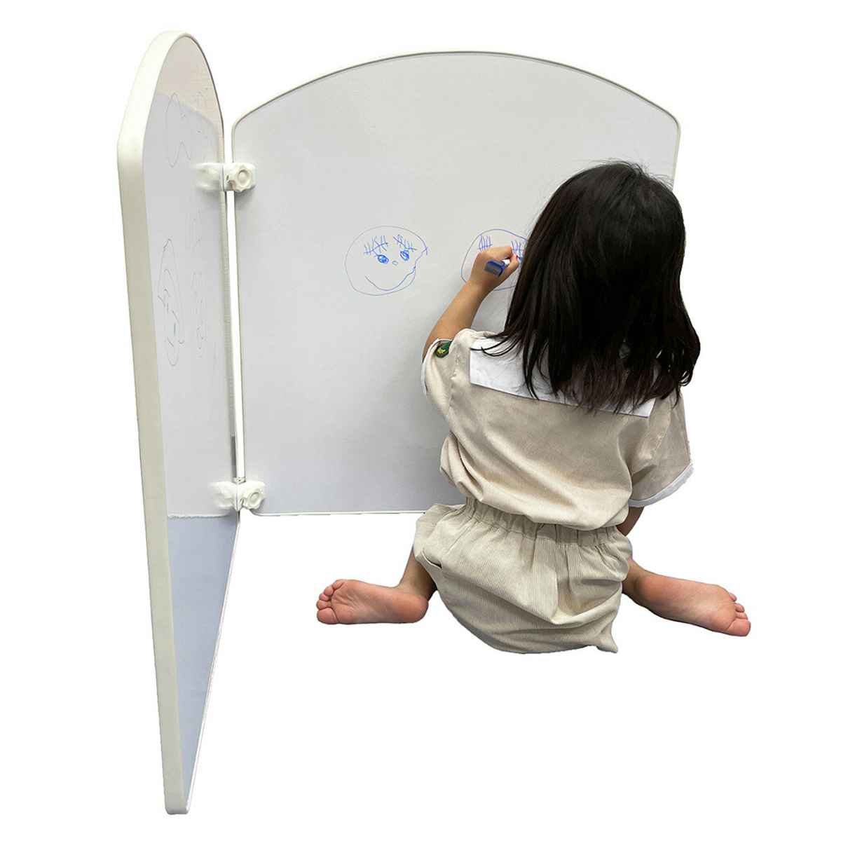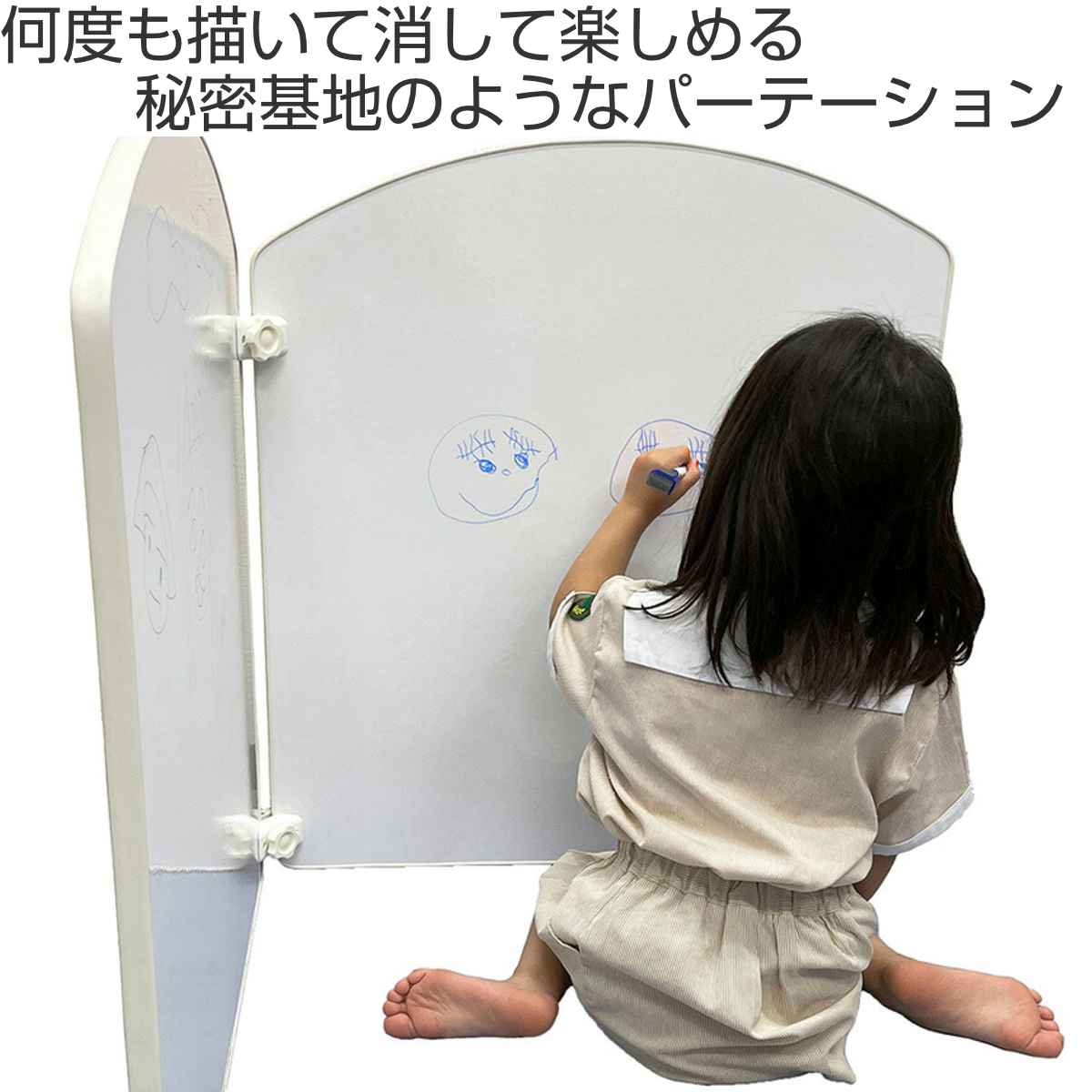 簡単に自立するお絵かきパーテーションです。4面がホワイトボードになっているので、何度でも描いて消して、たっぷりとお絵かきを楽しめます。